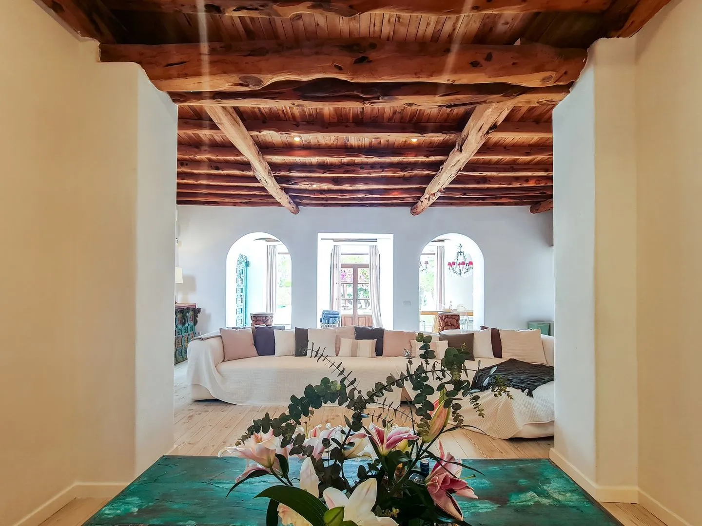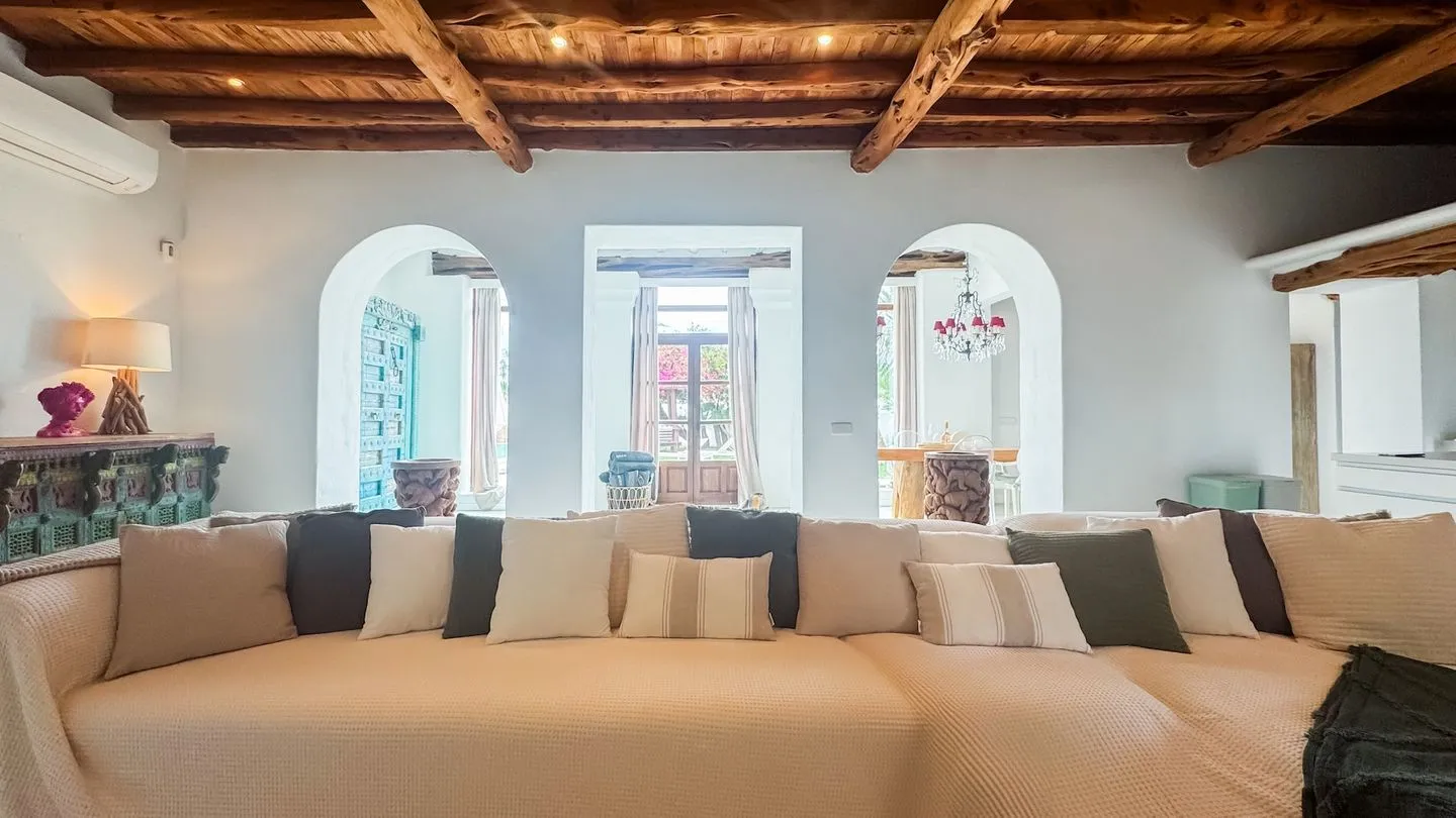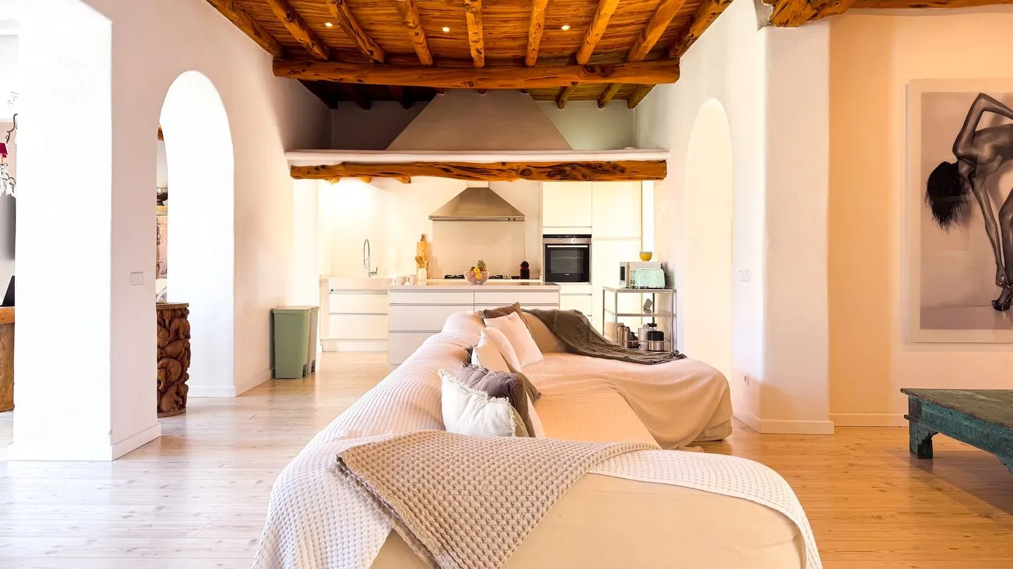 Die Villa Secret Paradise ist ein Ort, an dem man sich vom ersten Moment an wohlfühlt. Helle Räume, warme Farbtöne und hochwertige Materialien verleihen dem Haus eine besondere Leichtigkeit und machen es zu einem echten Zuhause auf Zeit. Die gelungene architektonische Verbindung aus Tradition und Moderne, natürliche Hölzer, weiche Stoffe und viele liebevoll ausgewählte Details schaffen eine entspannte, stilvolle Atmosphäre – fernab klassischer, steriler Ferienhäuser. Villen dieser Art sind auf Ibiza selten.