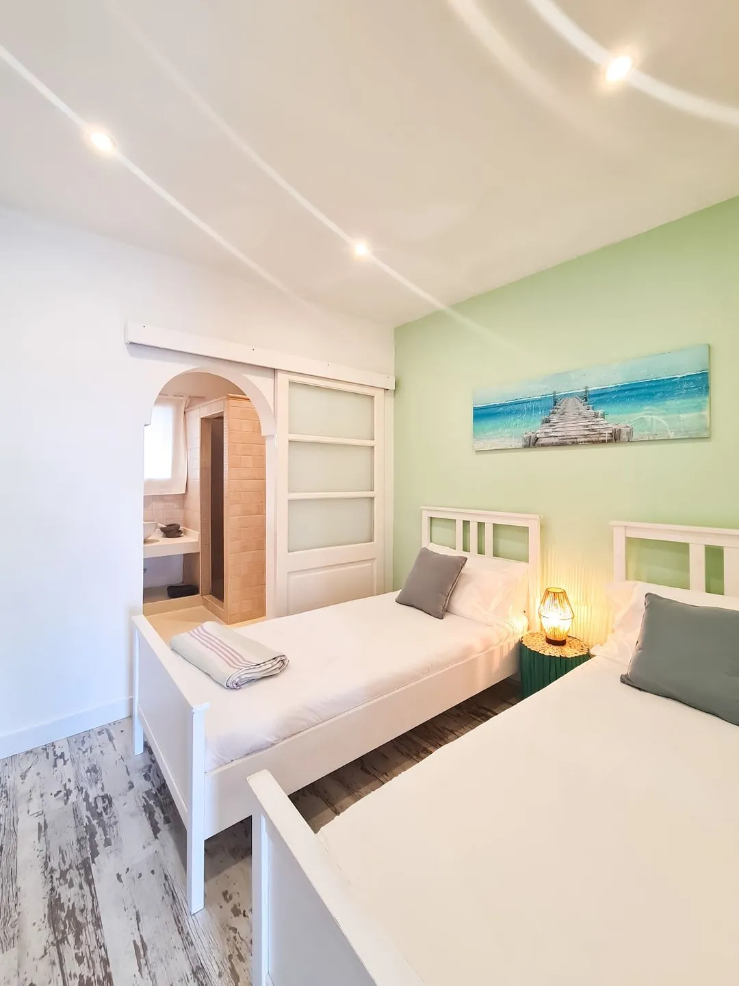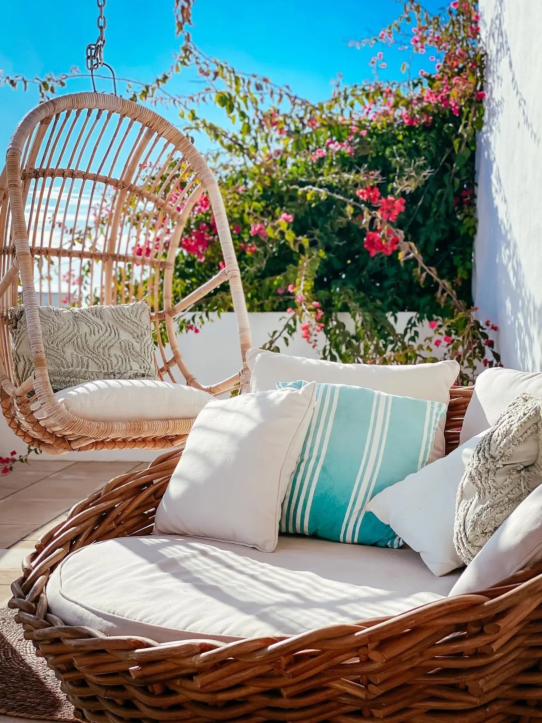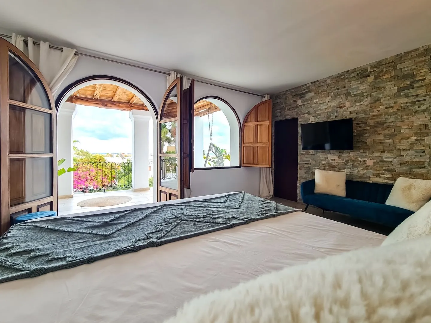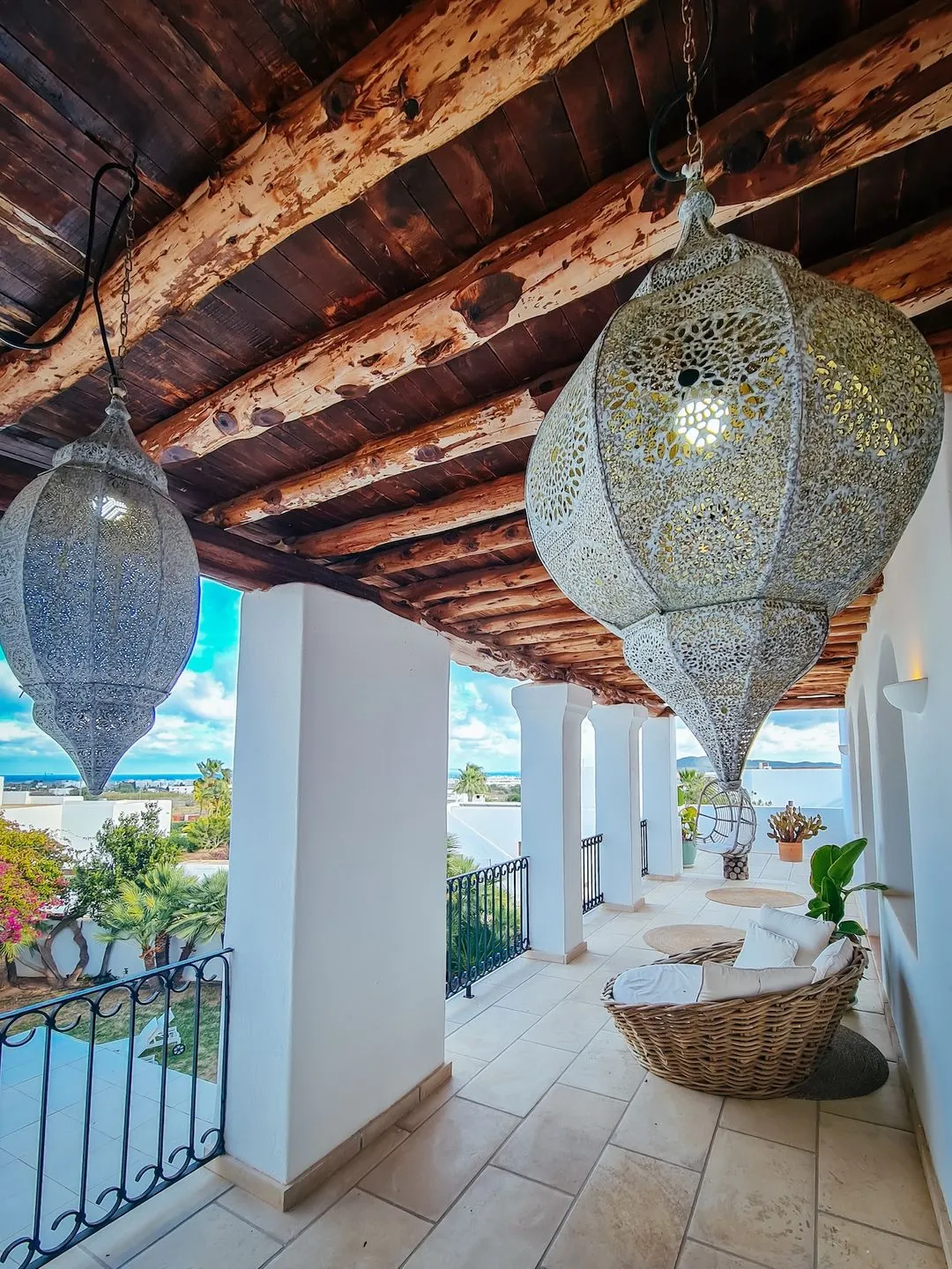 Alle Schlafzimmer sind individuell und sehr geschmackvoll eingerichtet und bieten hohen Komfort. Die beiden Schlafzimmer im Obergeschoss verfügen zusätzlich über eine traumhafte Terrasse mit Meerblick, mehreren Chill‑out‑Bereichen und sogar einer Schaukel – ein besonderer Ort für ruhige Morgenstunden oder entspannte Abende mit Blick auf das Meer.