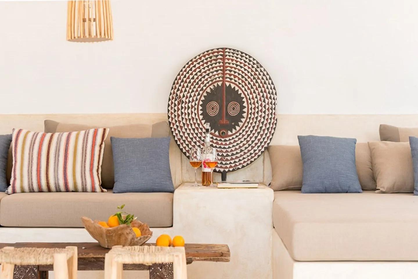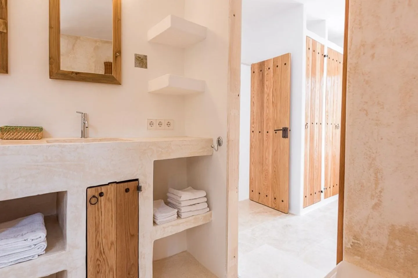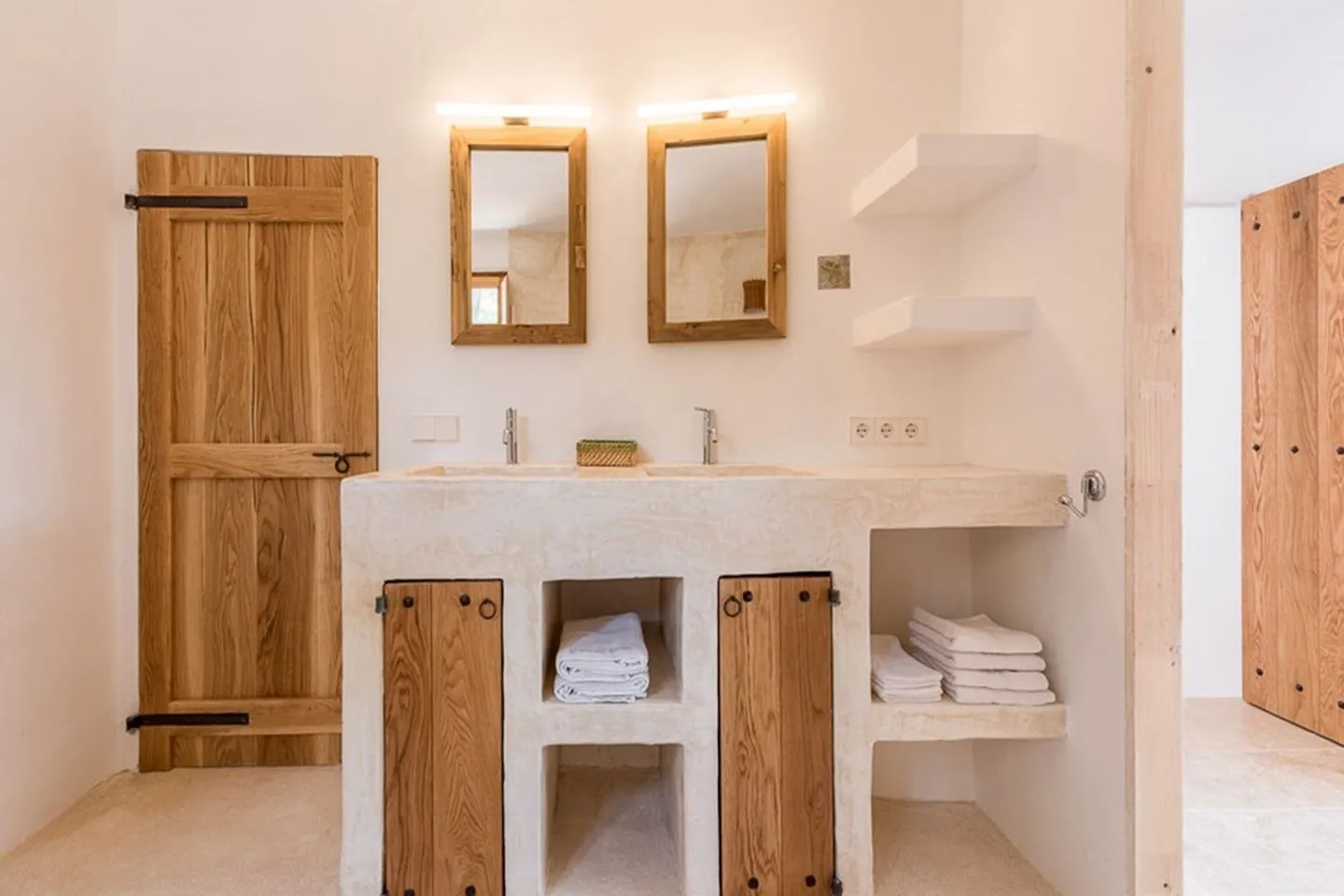 Die Innenräume zeichnen sich durch natürliche Materialien, fließende Übergänge und eine warme, ruhige Atmosphäre aus. Herzstück ist die helle, offene Küche, ergänzt durch einen Wohnbereich mit Billardtisch sowie mehrere Kamine für kühlere Monate. Moderne Ausstattung wie Klimaanlage, Smart‑Technologie, High‑Speed‑WLAN, Satelliten‑TV, Sonos‑Soundsystem, Kaffeemaschine, Safe und Hauswirtschaftsraum sorgen für zeitgemäßen Komfort.