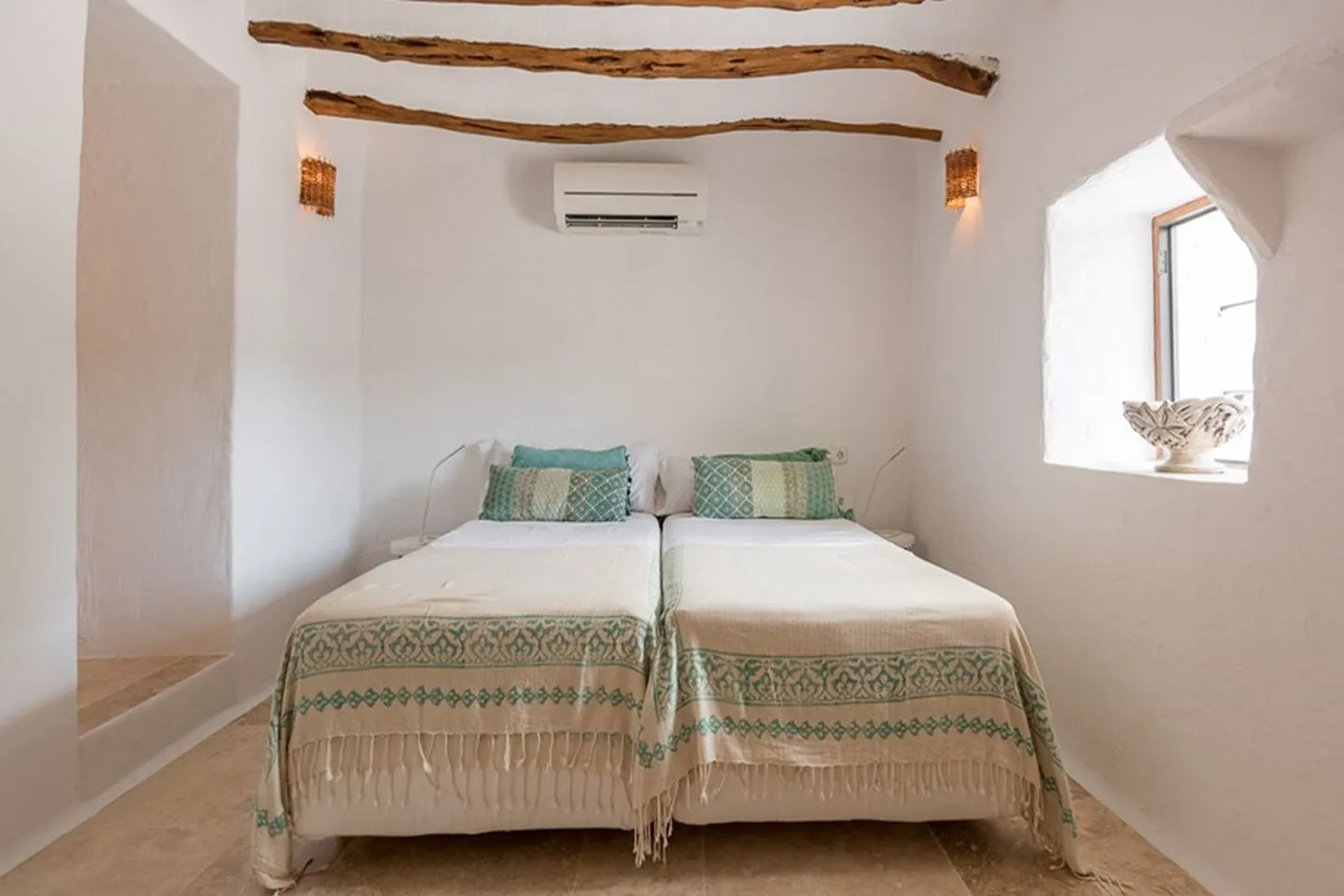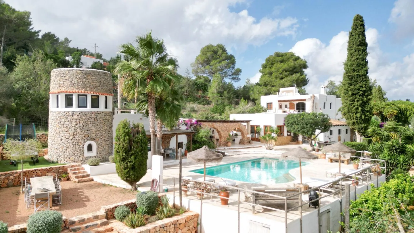 Die Finca ist für bis zu zwölf Gäste ausgelegt und besteht aus einem Haupthaus sowie einem separaten Tower‑Guesthouse. Im Haupthaus befinden sich vier Schlafzimmer: zwei Schlafzimmer im Erdgeschoss, eines davon mit Bad en suite, sowie im Obergeschoss das Master‑Schlafzimmer mit Bad en suite und privater Terrasse sowie ein weiteres Gästezimmer mit Bad en suite. Das Tower‑Guesthouse ergänzt das Anwesen mit zwei zusätzlichen Schlafzimmern, eigener Küche, Lounge‑Bereich und Arbeitsplatz.