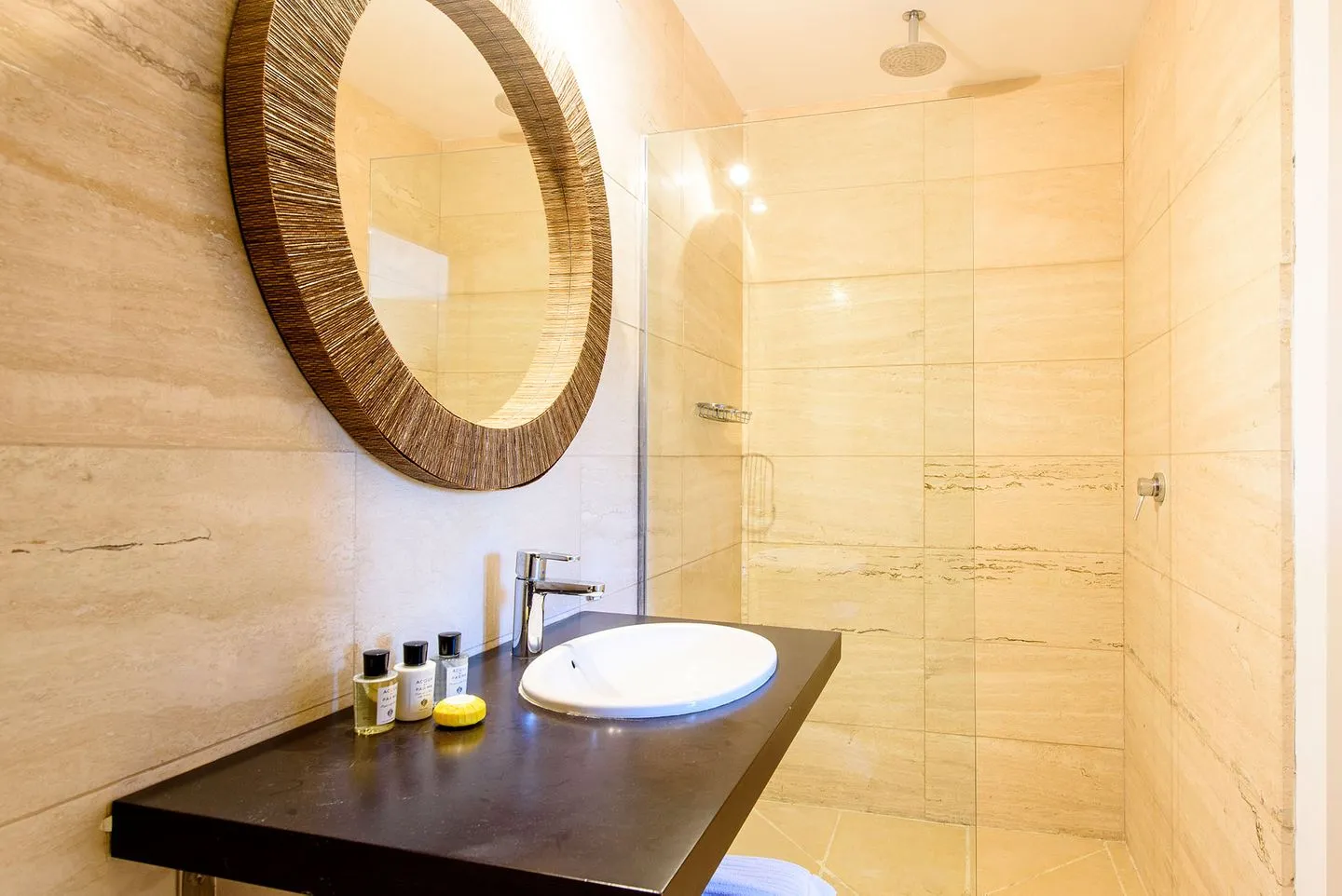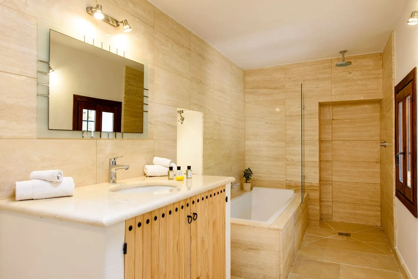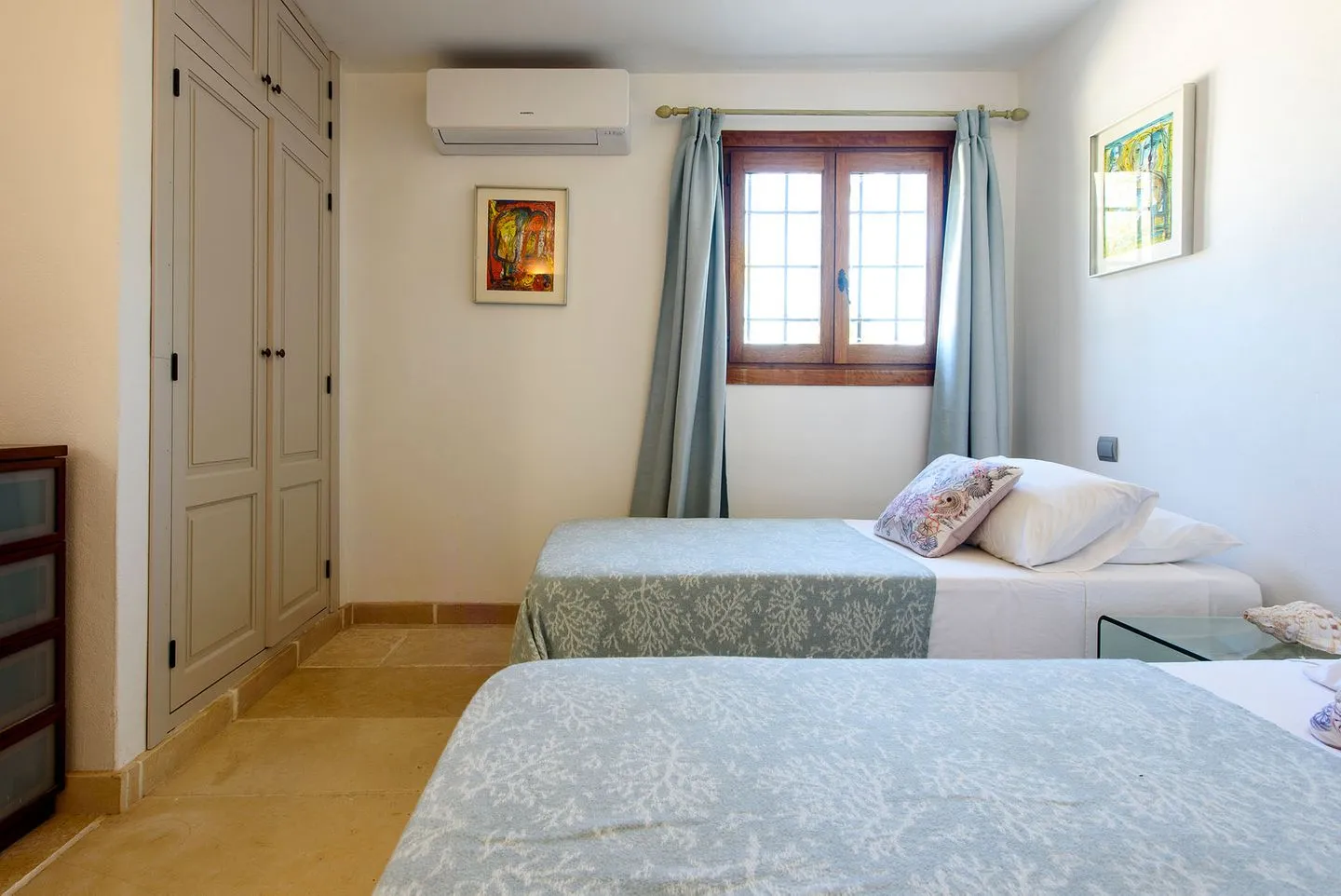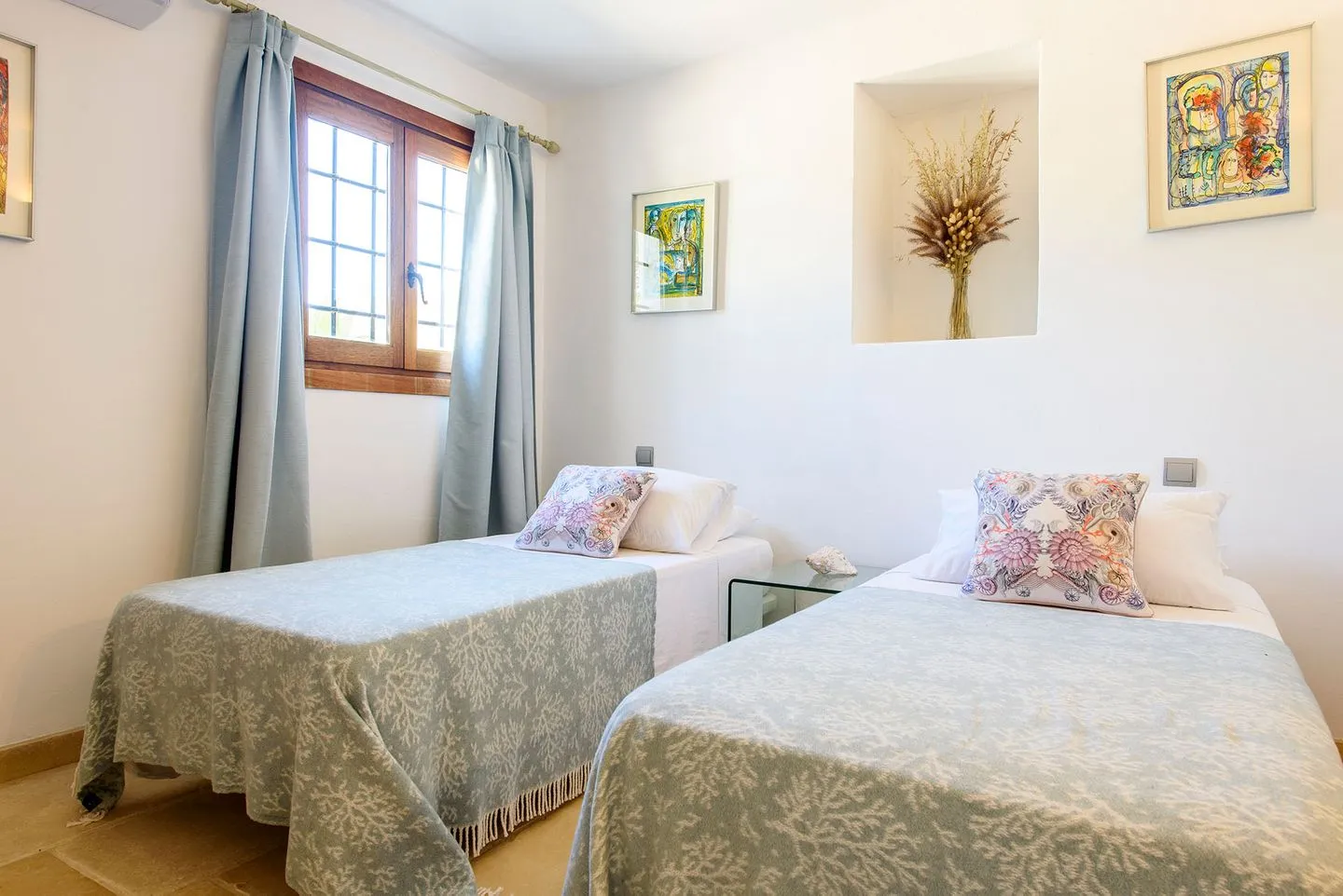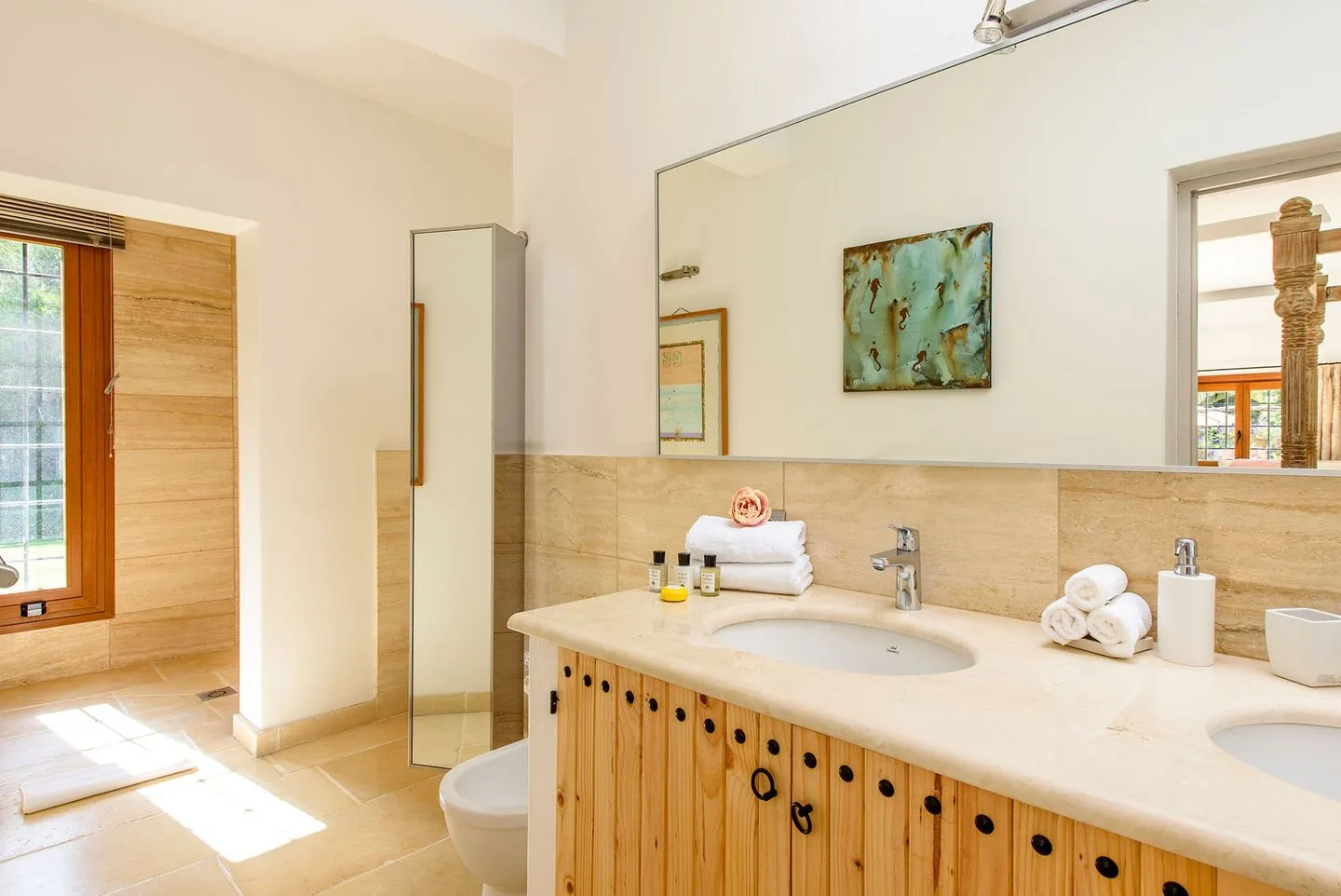 Die Finca verfügt über vier Schlafzimmer, alle mit Bad en suite. Zwei Master‑Suiten bieten private Terrassen mit freistehenden Badewannen und Regenduschen im Außenbereich. Ein weiteres Doppelschlafzimmer öffnet sich direkt zur Yoga‑Zone mit balinesischem Pavillon, während das vierte Schlafzimmer als komfortables Twin‑Doppelzimmer gestaltet ist.