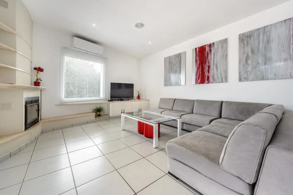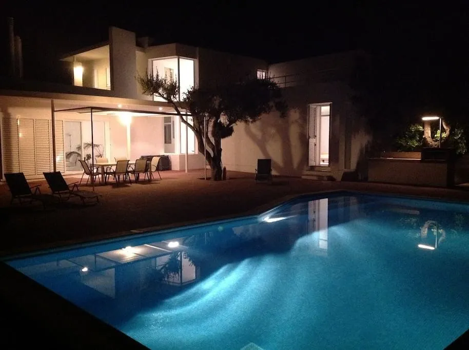 Das vollständig umzäunte Grundstück mit einer Fläche von rund 3.500 m² bietet viel Privatsphäre und ist mit ausgewählten Obstbäumen angelegt. Die Villa ist für bis zu acht Personen ausgelegt und verfügt über vier Doppelschlafzimmer sowie zwei Badezimmer, eines davon mit Bad en suite und Jacuzzi. Alle Schlafzimmer haben direkten Zugang zu den Terrassen, wodurch Innen‑ und Außenbereiche harmonisch miteinander verbunden sind.