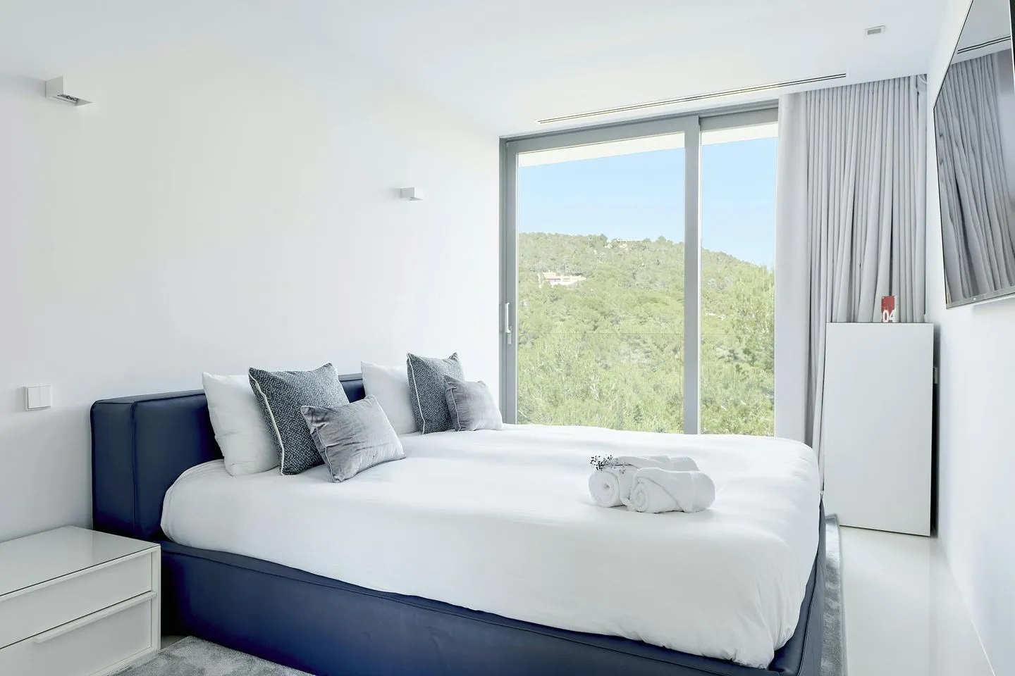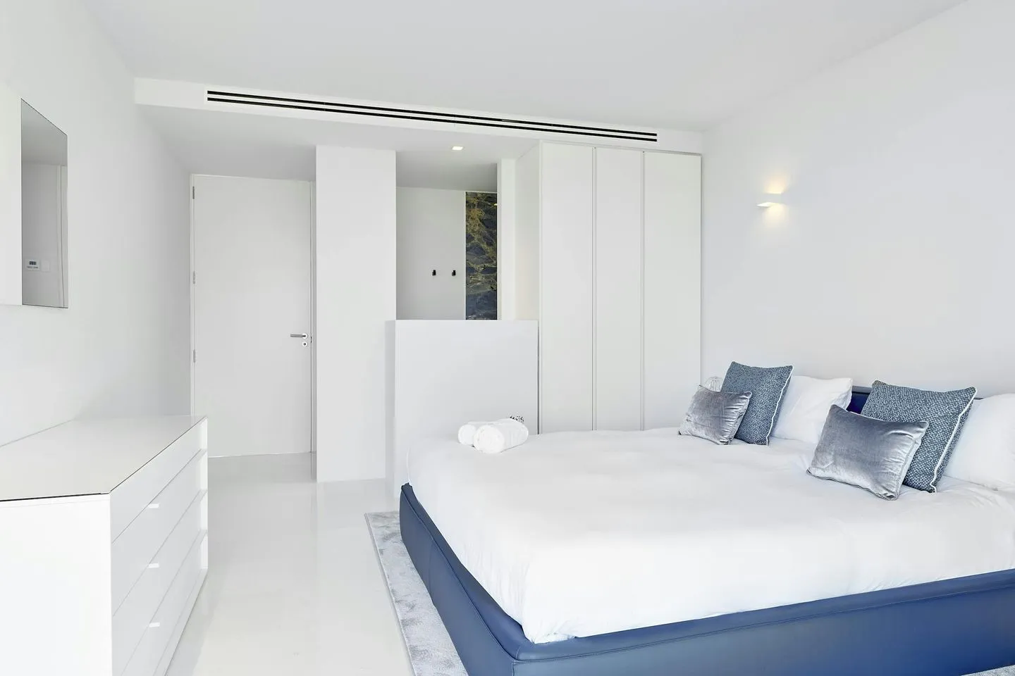 Die Villa verfügt über insgesamt sechs komfortable Schlafzimmer, alle mit Bad en suite ausgestattet. Die Master‑Suite bietet ein Kingsize‑Bett, ein luxuriöses Badezimmer mit freistehender Badewanne und Dusche, eine eigene Terrasse sowie einen direkten Meerblick. Weitere Schlafzimmer sind mit Queen‑ oder Kingsize‑Betten ausgestattet, verfügen über Terrassen, hochwertige Bäder und moderne Unterhaltungstechnik. Alle Schlafzimmer sind klimatisiert und bieten ein hohes Maß an Komfort und Privatsphäre.