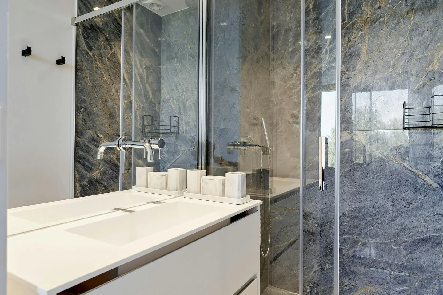 Hochwertige Pflegeprodukte bei Anreise in jedem Badezimmer (Shampoo, Conditioner, Duschgel, Bodylotion – in der Regel Marke Nivea)