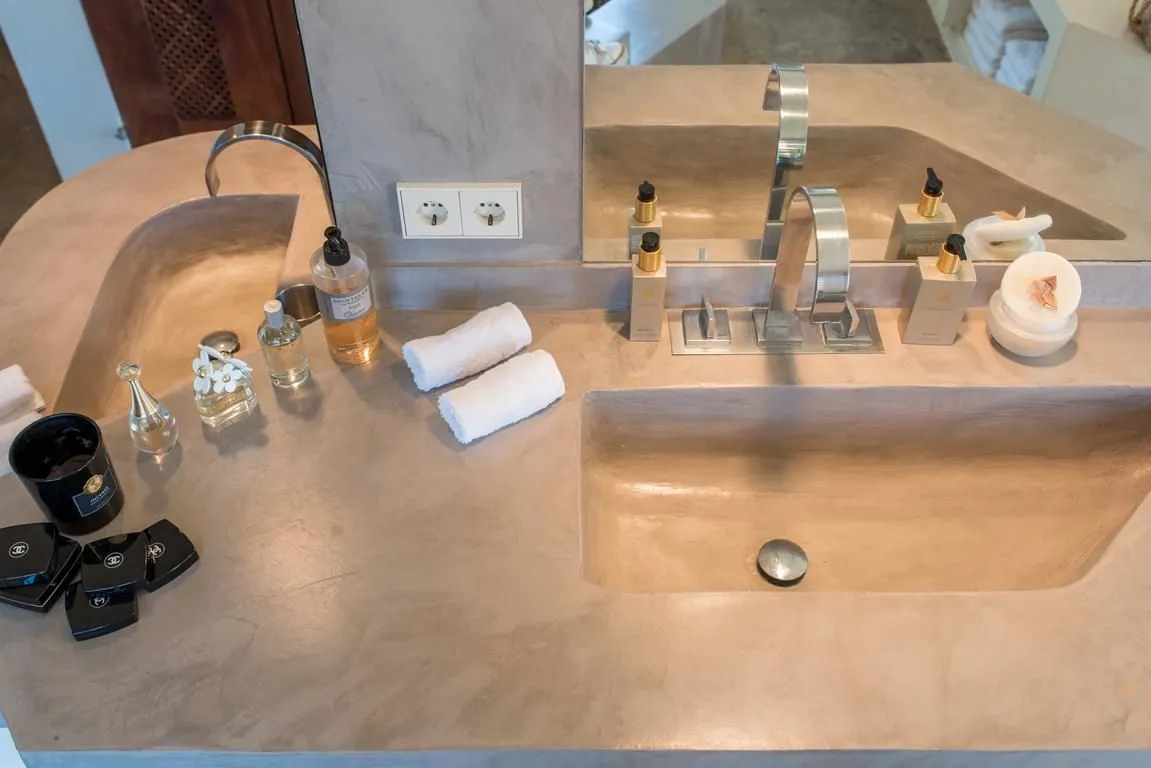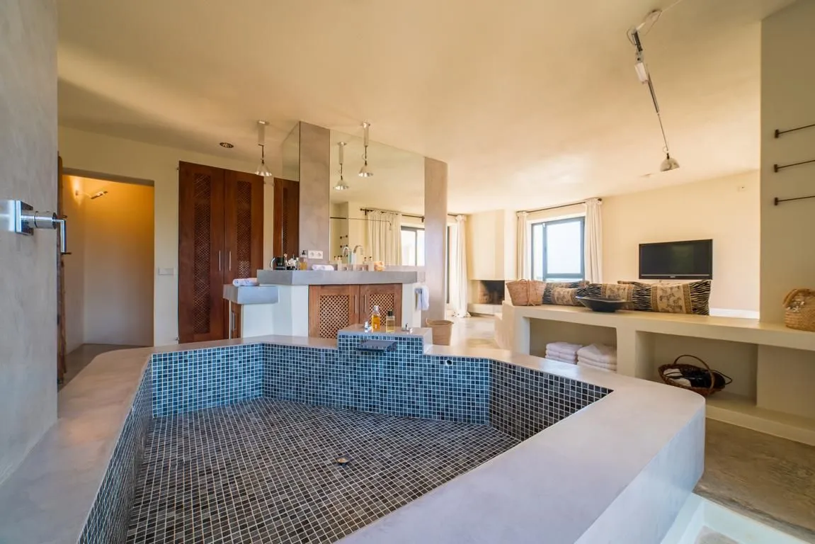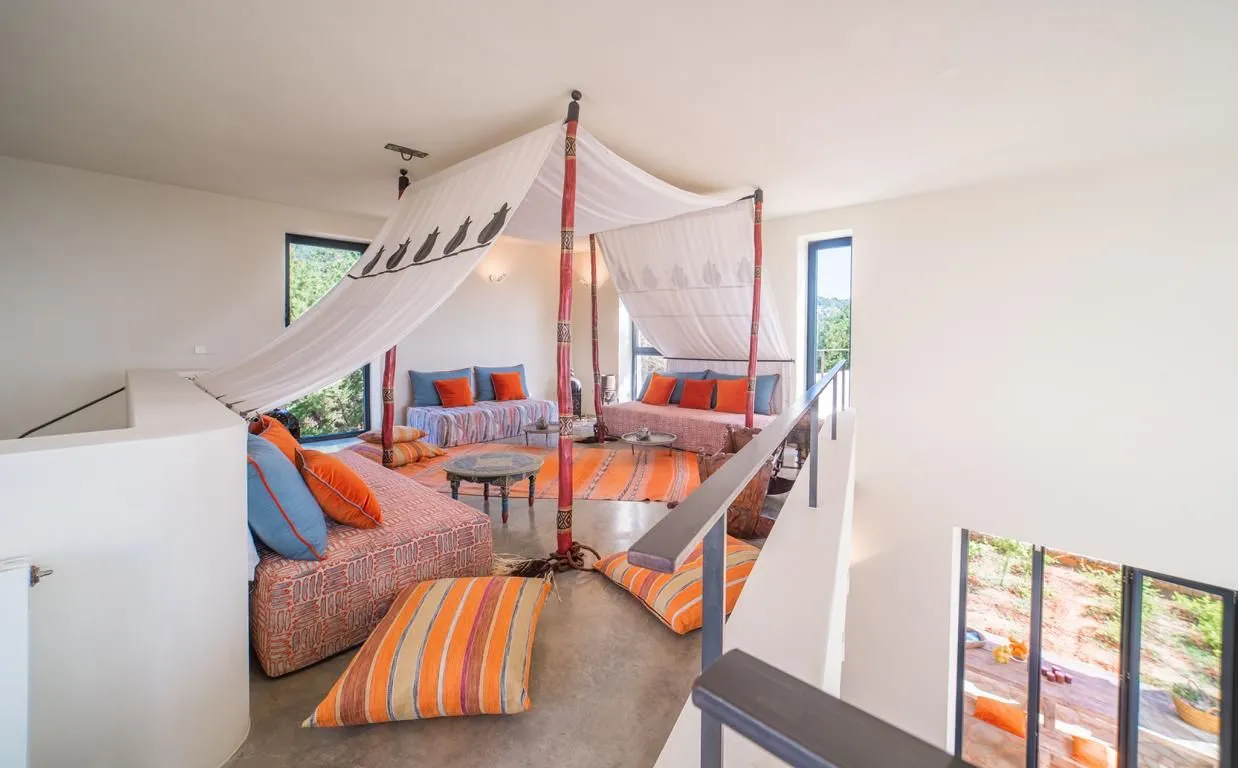 Die Einrichtung kombiniert moderne Akzente mit authentischen, mediterranen und marokkanischen Elementen und schafft eine warme, inspirierende Atmosphäre. Hohe Decken, offene Räume und der direkte Zugang zu den Terrassen verstärken das Gefühl von Weite und Leichtigkeit.