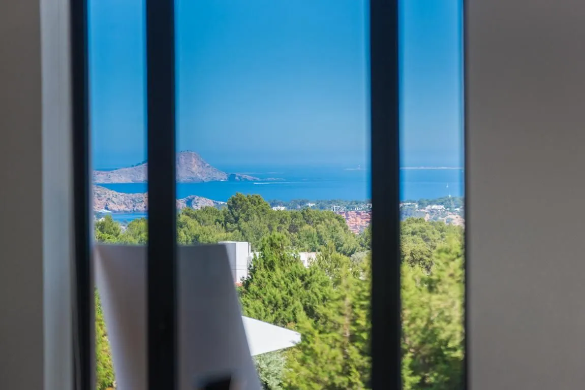 Der Außenbereich ist ebenso beeindruckend. Üppige, gepflegte Gärten mit Pinien, Palmen, Olivenbäumen und Steingärten umgeben die Finca und verbreiten einen angenehmen mediterranen Duft. Mehrere Terrassen mit Meerblick bieten unterschiedliche Rückzugsorte – vom Al‑Fresco‑Dining unter dem Sternenhimmel bis hin zu entspannten Lounge‑Bereichen mit niedrigen Sitzgelegenheiten.