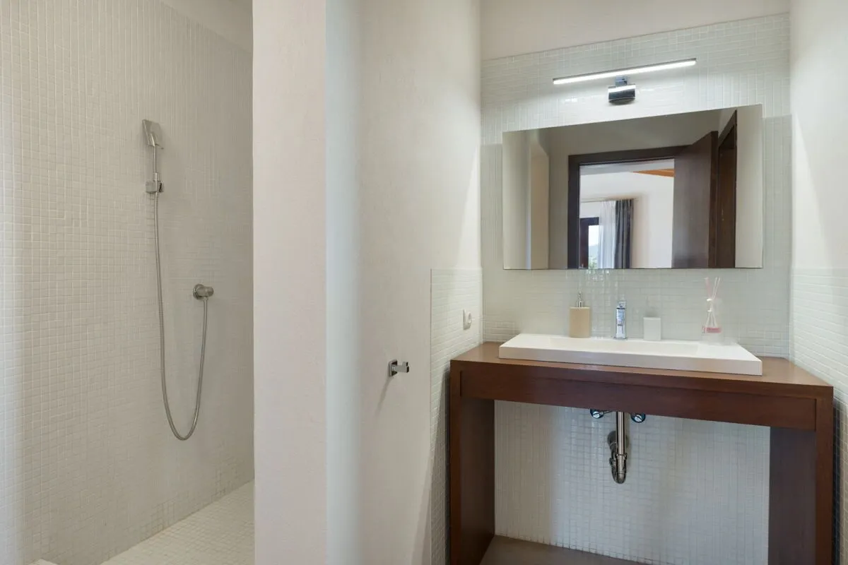 Die Finca bietet insgesamt sechs klimatisierte Schlafzimmer, verteilt auf zwei Etagen. Jedes Schlafzimmer verfügt über ein eigenes, hochwertig ausgestattetes Badezimmer und bietet hohen Komfort sowie maximale Privatsphäre. Zwei der Schlafzimmer im Obergeschoss haben direkten Zugang zu einer großzügigen Sonnenterrasse, von der aus sich ein besonders schöner Blick über das Anwesen und in Richtung Meer eröffnet.