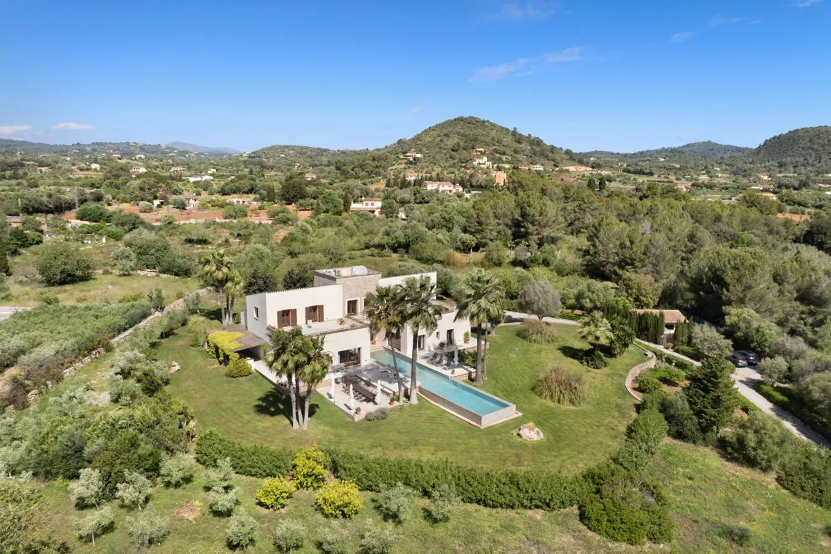 Die Finca Son Sard Mallorca erhebt sich in ruhiger Hanglage auf einem weitläufigen, gepflegten Anwesen nahe Son Servera. Umgeben von Palmen, Olivenbäumen, Lavendel und Zypressen vermittelt bereits die eindrucksvolle Auffahrt den besonderen Charakter dieser exklusiven Luxusfinca. Von hier aus eröffnet sich ein weiter Blick über die umliegende Landschaft bis hin zum Meer – eine Lage, die Privatsphäre, Ruhe und mediterrane Weite auf ideale Weise verbindet.