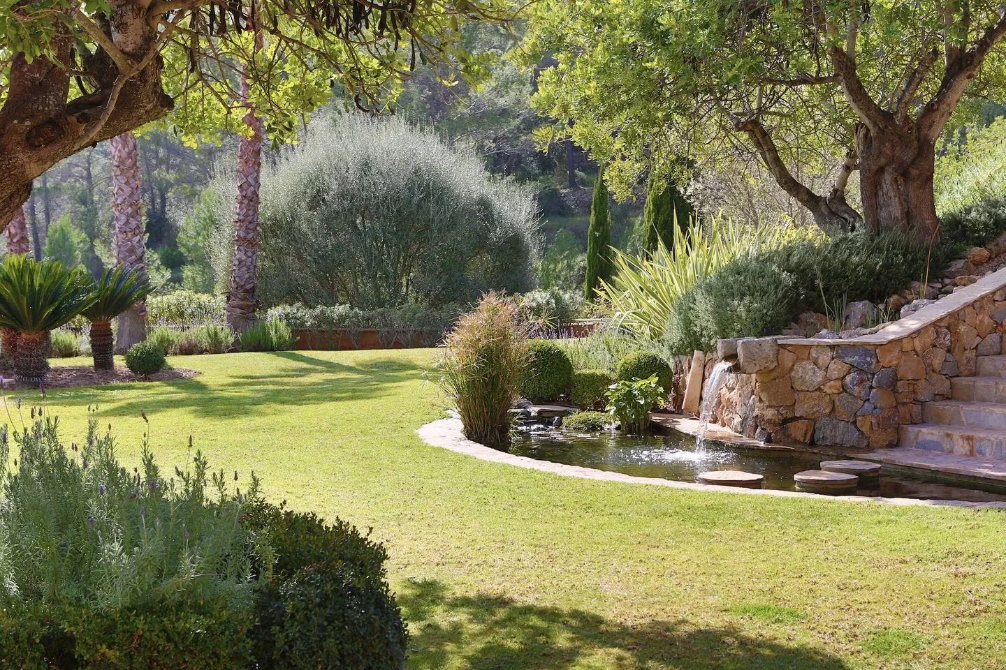 Der weitläufige Garten ist liebevoll angelegt und bietet zahlreiche Rückzugsorte, Chill‑out‑Bereiche sowie einen Teich mit Wasserspielen. Mittelpunkt des Außenbereichs ist der 10 x 5 Meter große Pool, der an warmen Tagen für erfrischende Abkühlung sorgt. Mehrere überdachte und offene Terrassen sowie eine großzügige Aussichtsterrasse laden dazu ein, den Tag mit einem Frühstück in der Morgensonne zu beginnen oder laue Abende mit Blick in die Landschaft ausklingen zu lassen.