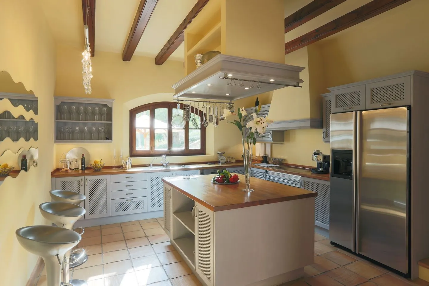 Die komplett ausgestattete Küche mit hochwertiger deutscher Technik bietet beste Voraussetzungen für entspanntes Kochen und gemeinsames Genießen. Ein Hauswirtschaftsraum ergänzt die funktionale Ausstattung der Finca. Fußbodenheizung sorgt in den kühleren Monaten für angenehmen Wohnkomfort.