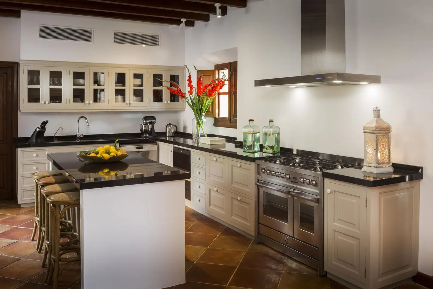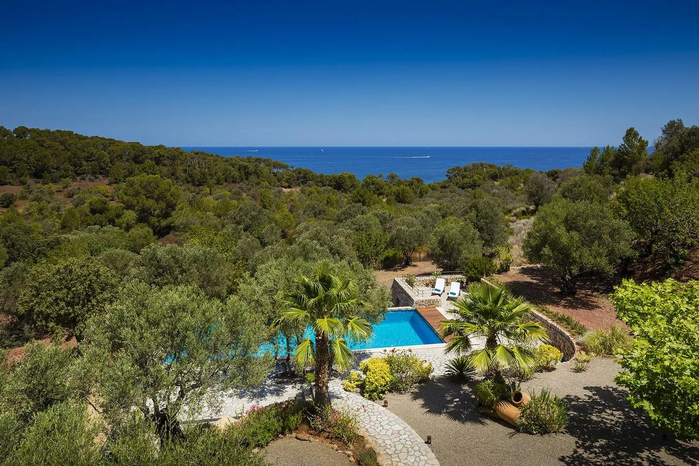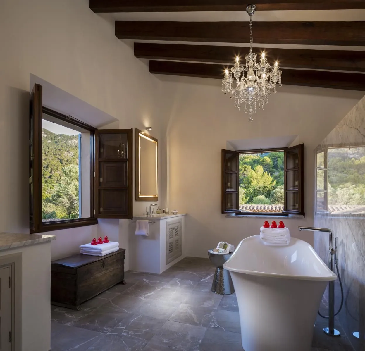 Der Name „Sa Terra Rotja“ bedeutet im Mallorquinischen „Rote Erde“ und spiegelt den authentischen Charakter der Region wider. Die Villa verfügt über vier großzügige Schlafzimmer und bietet Platz für bis zu acht Gäste. Herzstück ist die elegante Master Suite (ca. 28 m²) mit Kingsize-Bett, atemberaubendem Meerblick, einem großzügigen Bad en suite mit freistehender Badewanne, Schreibtisch, gemütlicher Leseecke sowie einem charmanten kleinen Fenster mit Blick in den Wohnbereich.