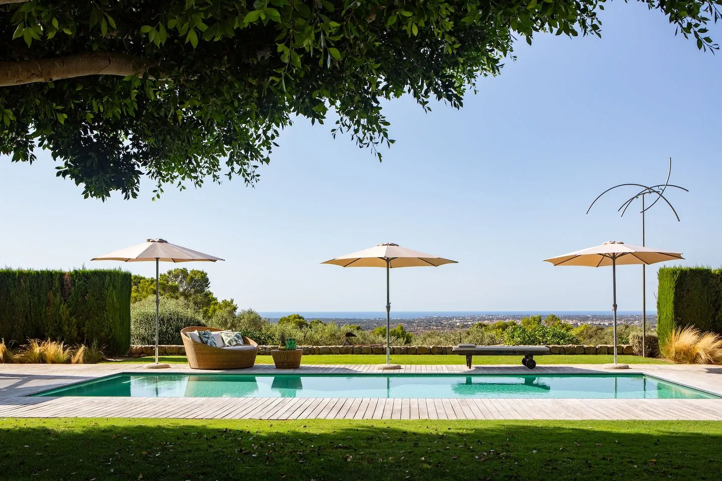 Die Luxus Finca Son Silvestre thront auf einer Anhöhe nahe Santanyí und bietet spektakulären Panorama‑Meerblick sowie absolute Ruhe auf einem 35.000 m² großen mediterranen Grundstück. Wer eine großzügige Finca auf Mallorca mit Meerblick mieten möchte, findet hier ein außergewöhnliches Feriendomizil mit stilvoller Architektur, viel Platz und exklusiver Ausstattung.