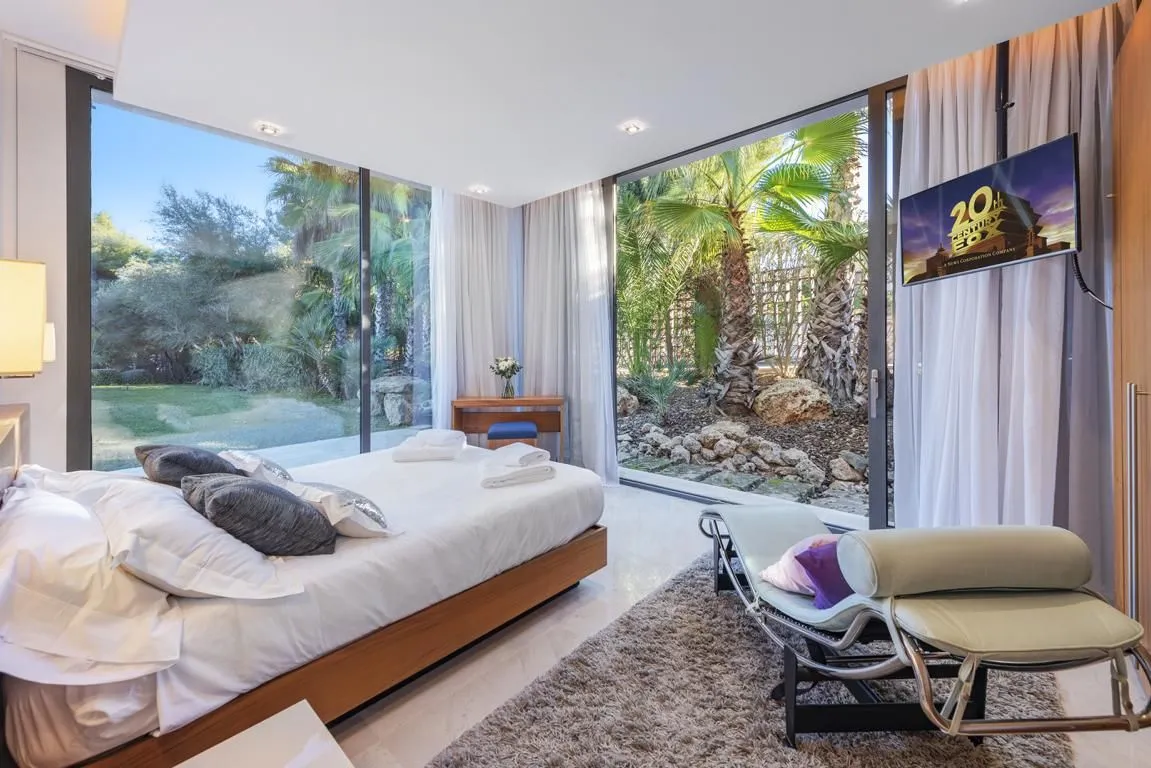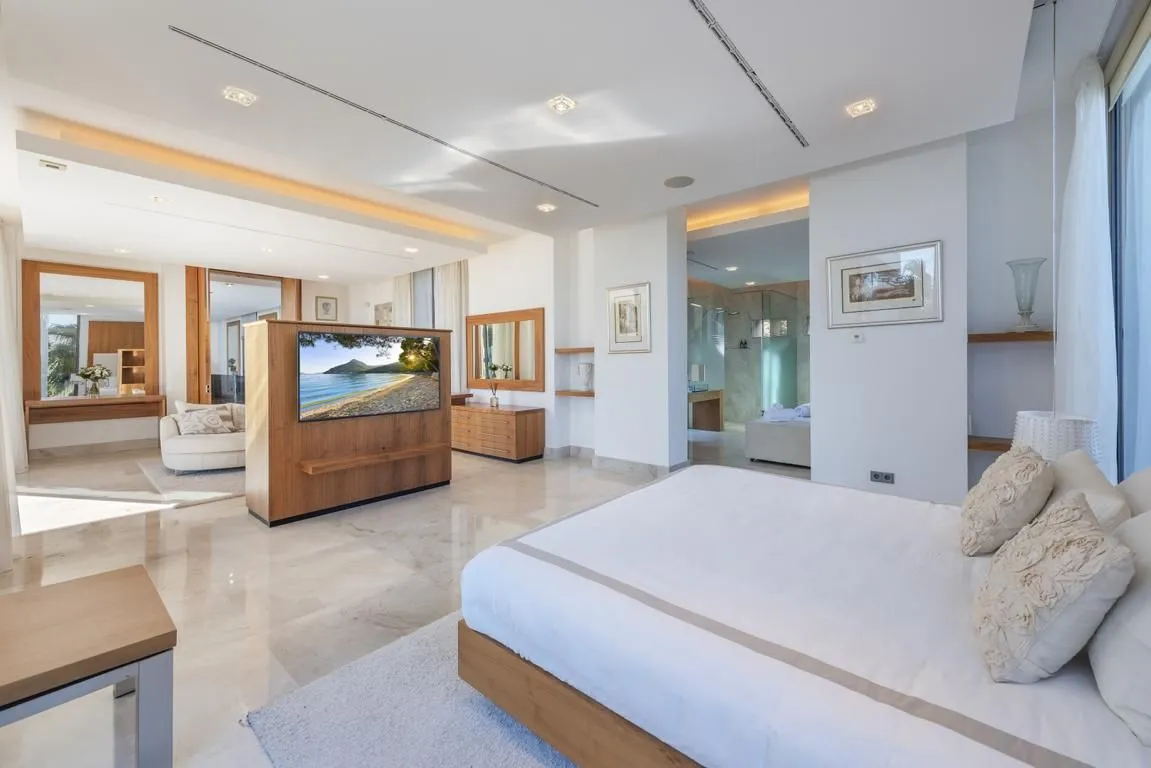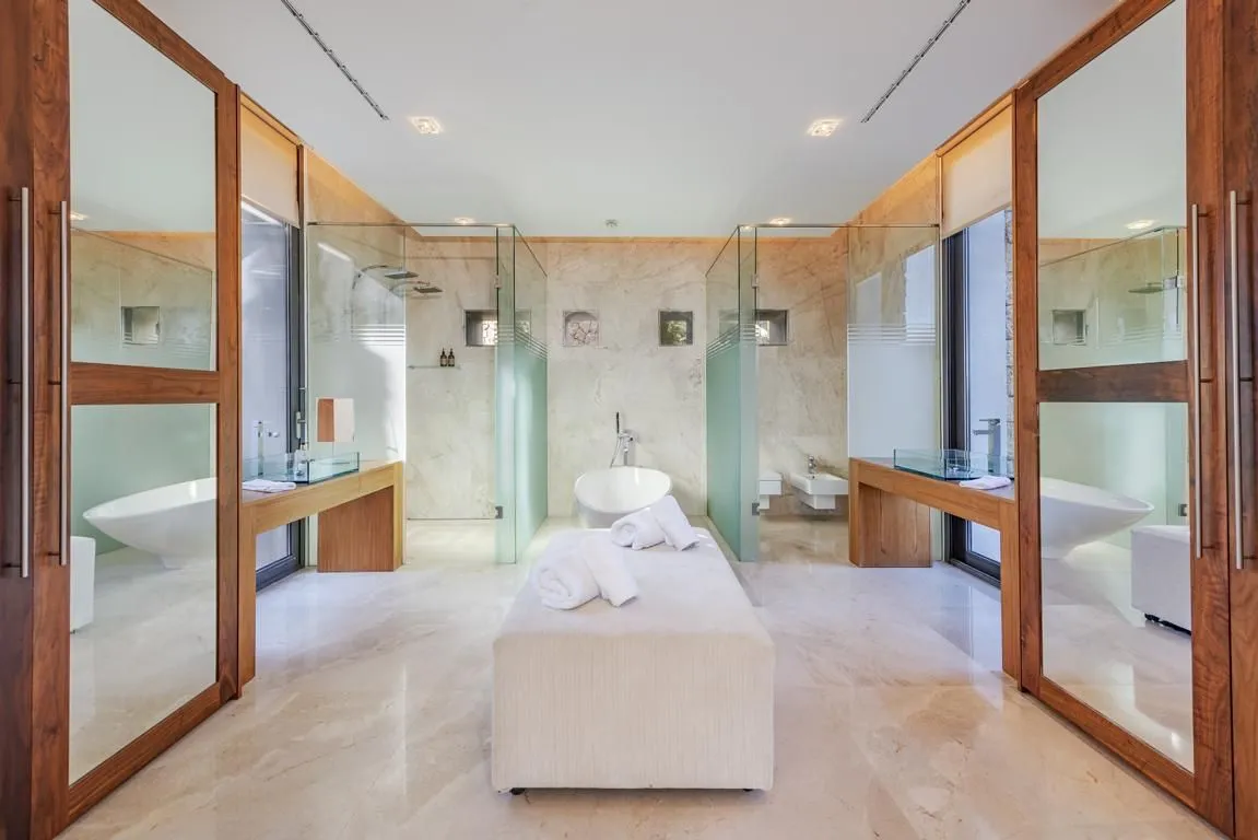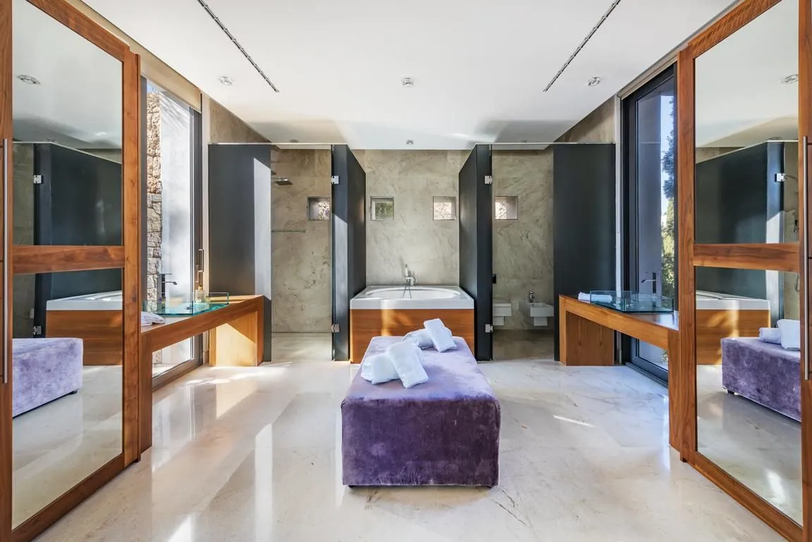 Die Villa verfügt über sechs stilvoll ausgestattete Schlafzimmer, alle mit modernen, eleganten Bädern en suite. Durch das klare architektonische Konzept und die konsequent hochwertige Ausstattung entsteht ein harmonischer, luxuriöser Rückzugsort für Familien, Freunde oder Gruppen, die Wert auf Privatsphäre und Design legen.