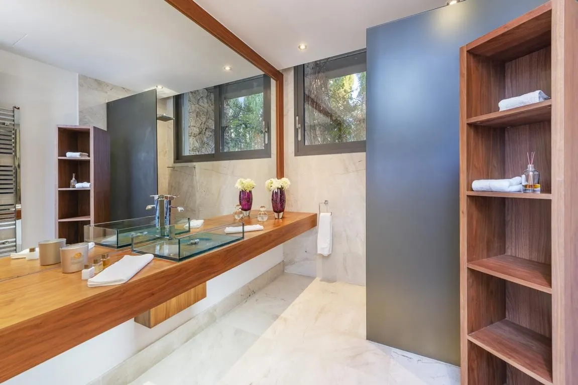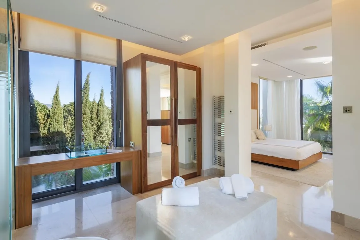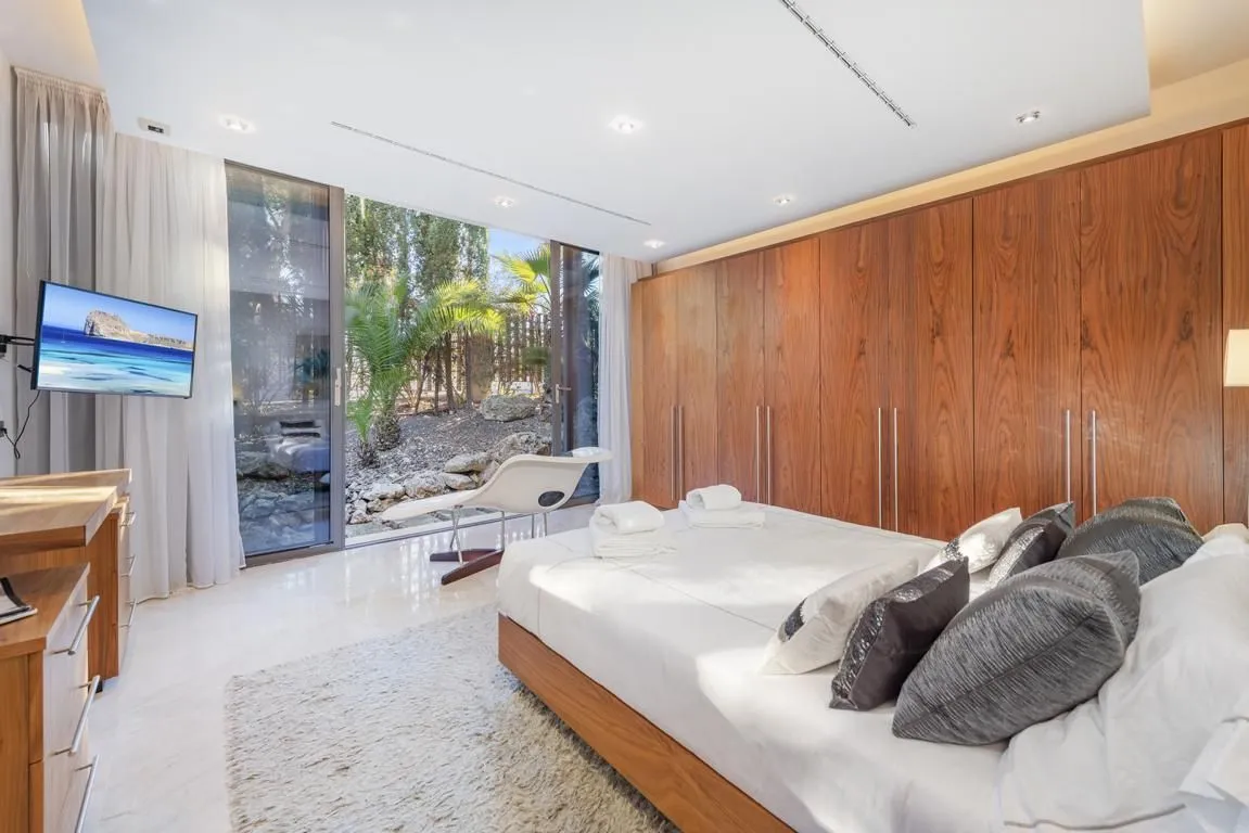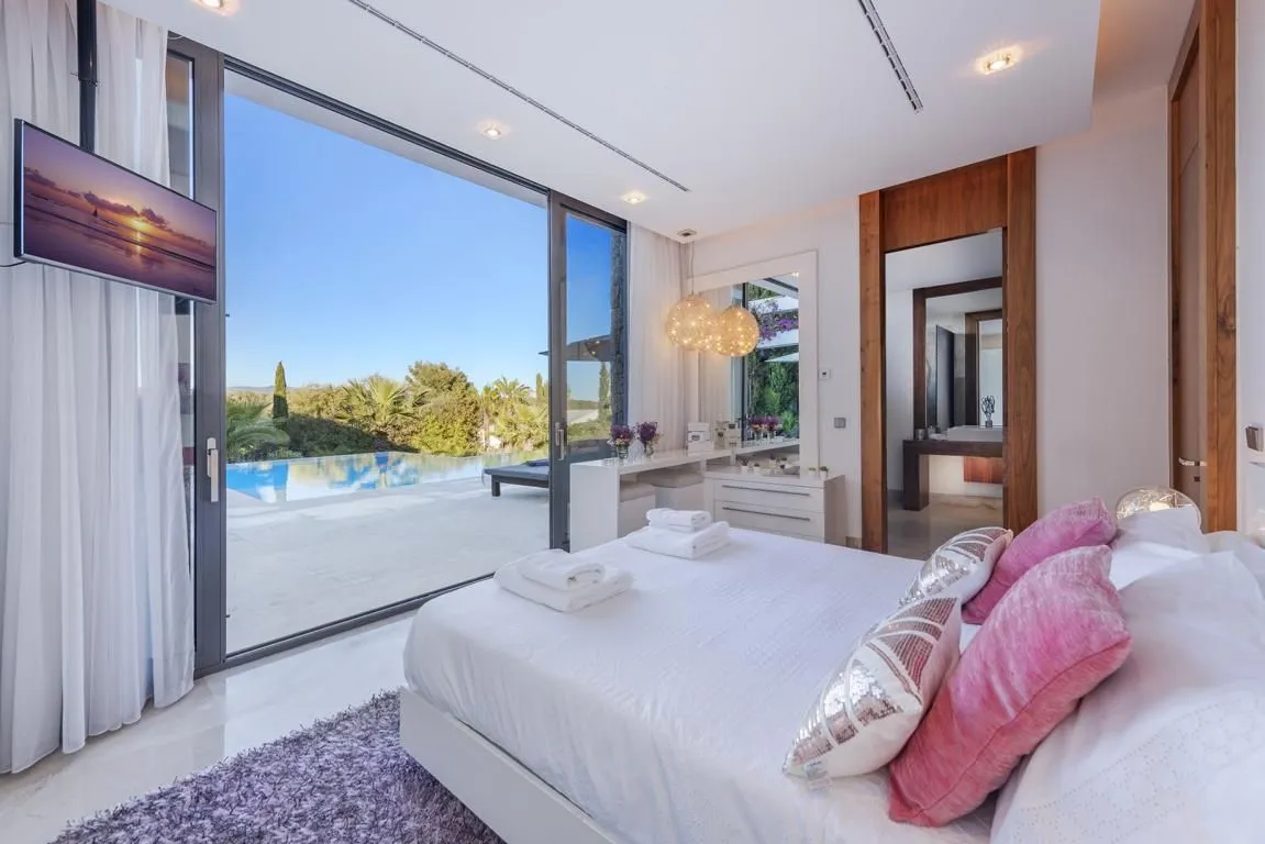 Die Villa verfügt über sechs stilvoll ausgestattete Schlafzimmer, alle mit modernen, eleganten Bädern en suite. Durch das klare architektonische Konzept und die konsequent hochwertige Ausstattung entsteht ein harmonischer, luxuriöser Rückzugsort für Familien, Freunde oder Gruppen, die Wert auf Privatsphäre und Design legen.