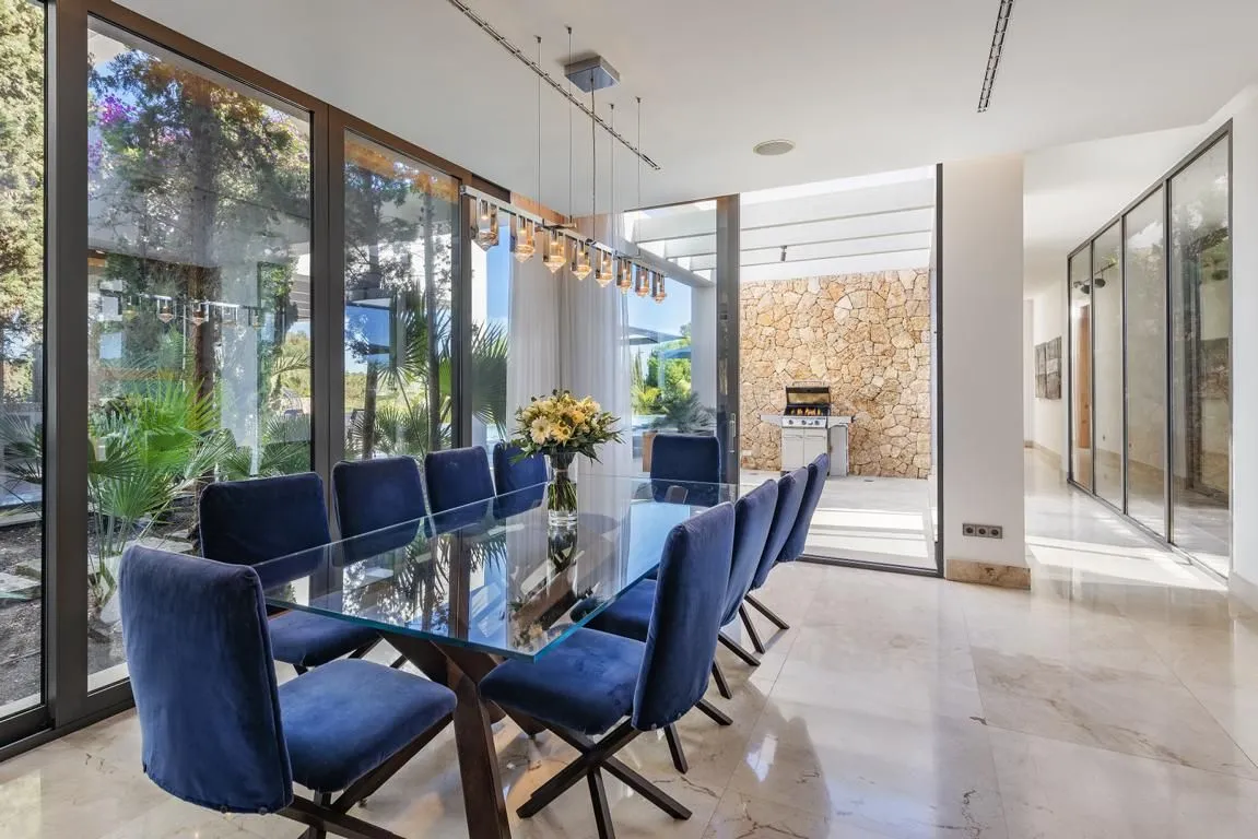 Die bekannte Badebucht Cala Portals Vells erreichst du in etwa zehn Minuten zu Fuß – ideal für ein morgendliches Bad im Meer oder entspannte Strandtage. Die ruhige Umgebung und die Nähe zur Natur ergänzen das exklusive Ambiente der Villa perfekt.