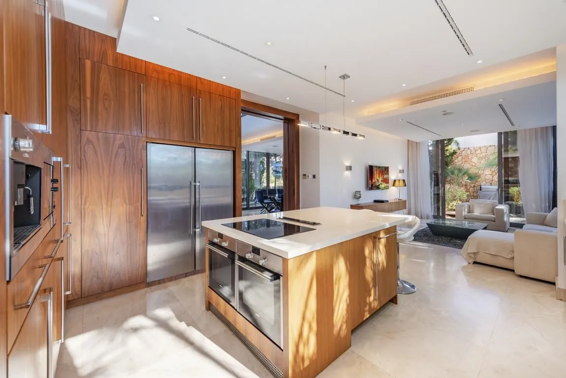 Die Villa Christa liegt in der ruhigen, exklusiven Wohngegend Sol de Mallorca und gehört zu den architektonisch herausragendsten Villen der Region. Der zeitlos moderne Bauhaus-Stil wurde hier perfekt umgesetzt: klare Linien, lichtdurchflutete Räume, hochwertige Materialien und ein elegantes, puristisches Design, das sich durch das gesamte Haus zieht.
