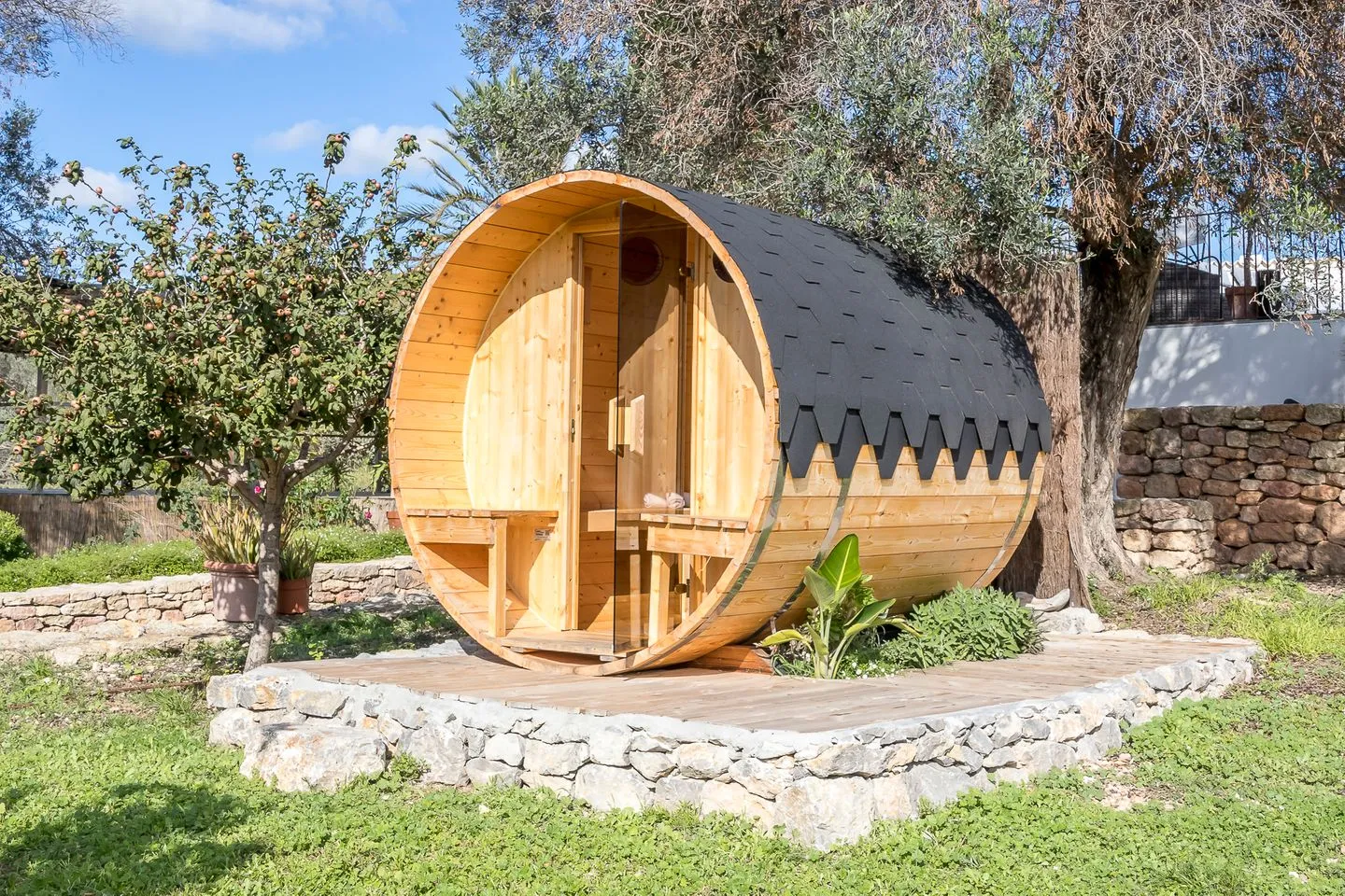 For wellness‑focused stays, the property offers a new outdoor gym, fitness equipment, a barrel sauna and a dedicated yoga platform. With central heating, underfloor heating and fibre optic WiFi, the villa is equally suited for winter rentals and year‑round retreats.