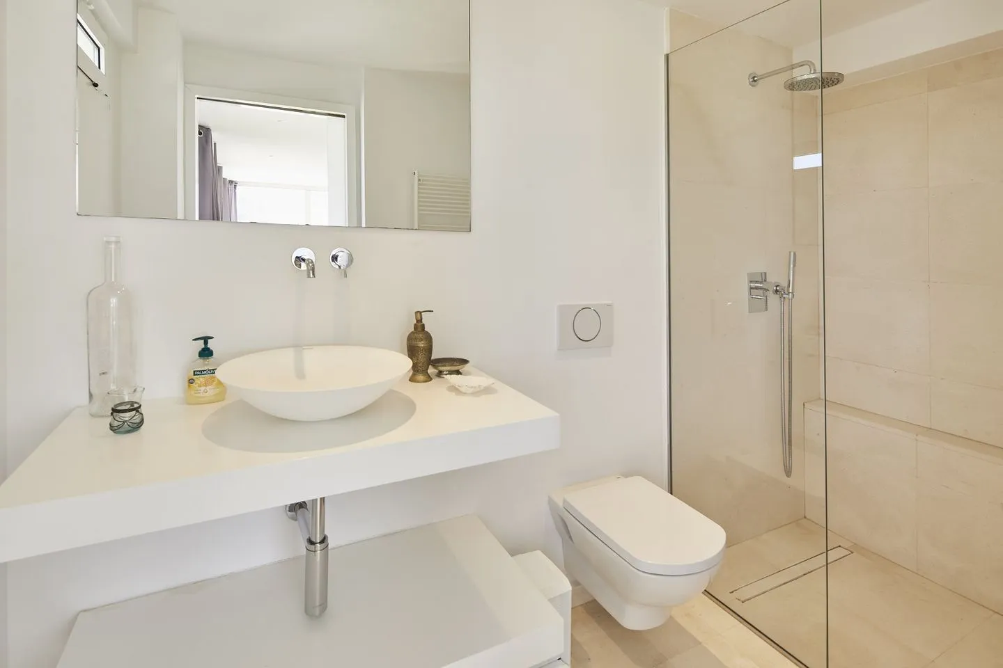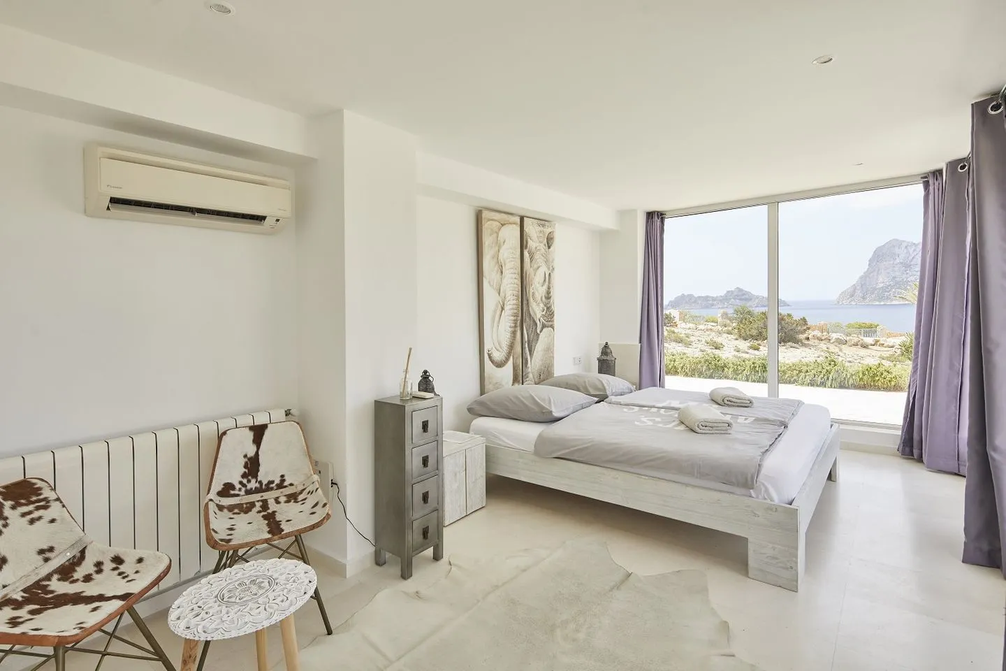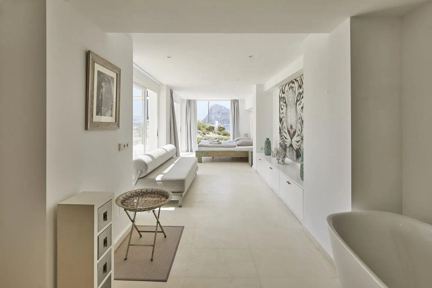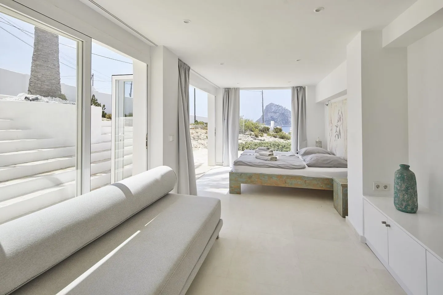 The location is ideal for guests who value privacy while remaining close to some of Ibiza’s most beautiful beaches. Cala Carbó is just a ten‑minute walk away, while the famous Cala d’Hort with its renowned seafood restaurants is only a short drive. Ibiza Town is approximately 20 km away, and the airport can be reached in about 15 km.