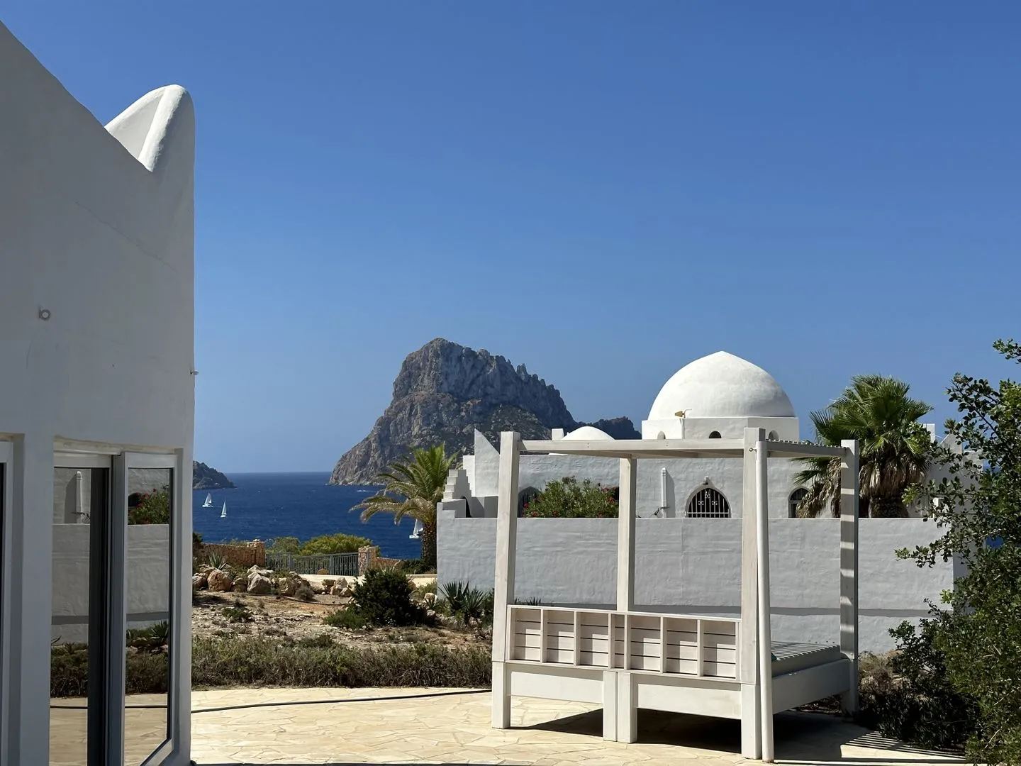 Villa Marrakesh Ibiza enjoys a privileged location in the southwest of the island, offering breathtaking panoramic views of the iconic Es Vedrà and Vedranell rock formations, renowned for their almost mystical atmosphere. Set on a spacious private plot, this detached villa combines tranquility, open views and authentic Mediterranean lifestyle in perfect harmony.