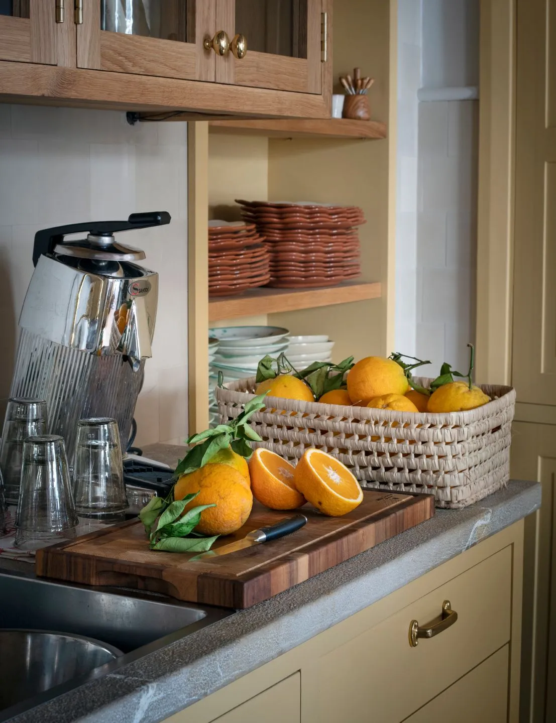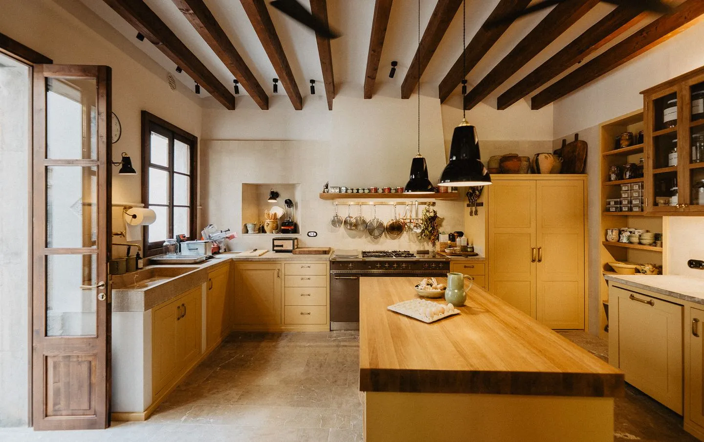 The fully equipped main kitchen is reserved exclusively for the private chef and is not available for guest cooking. For guest convenience, a coffee machine, microwave, refrigerator and wine fridge are available in the dining area.