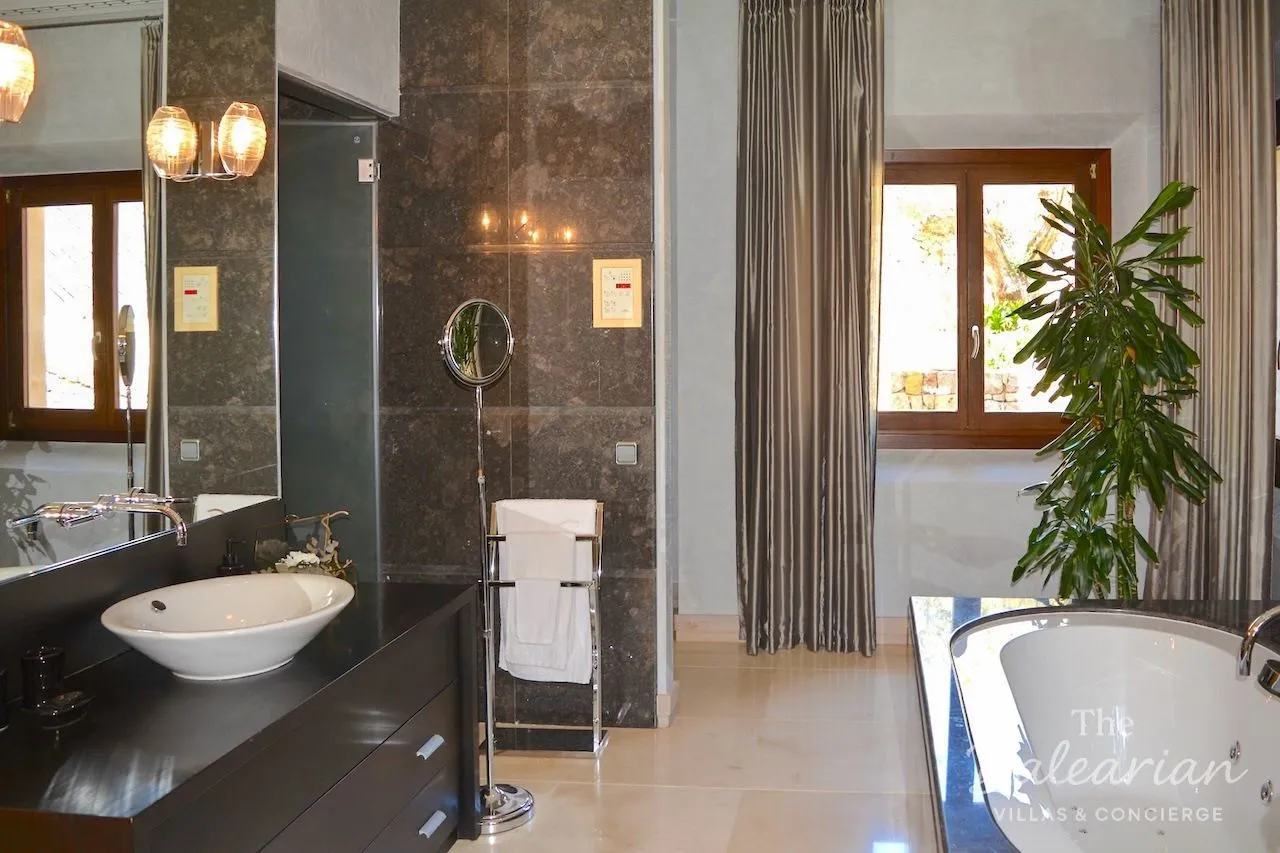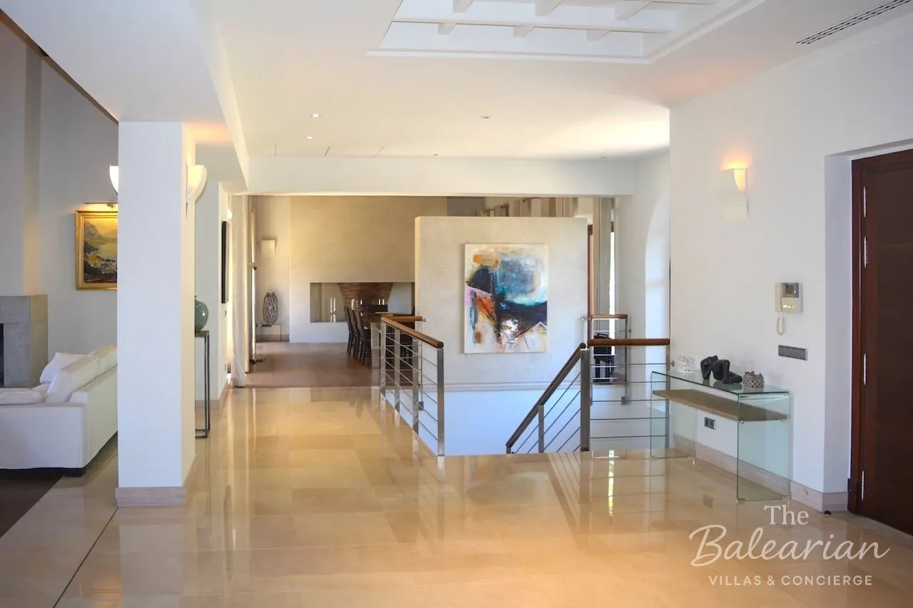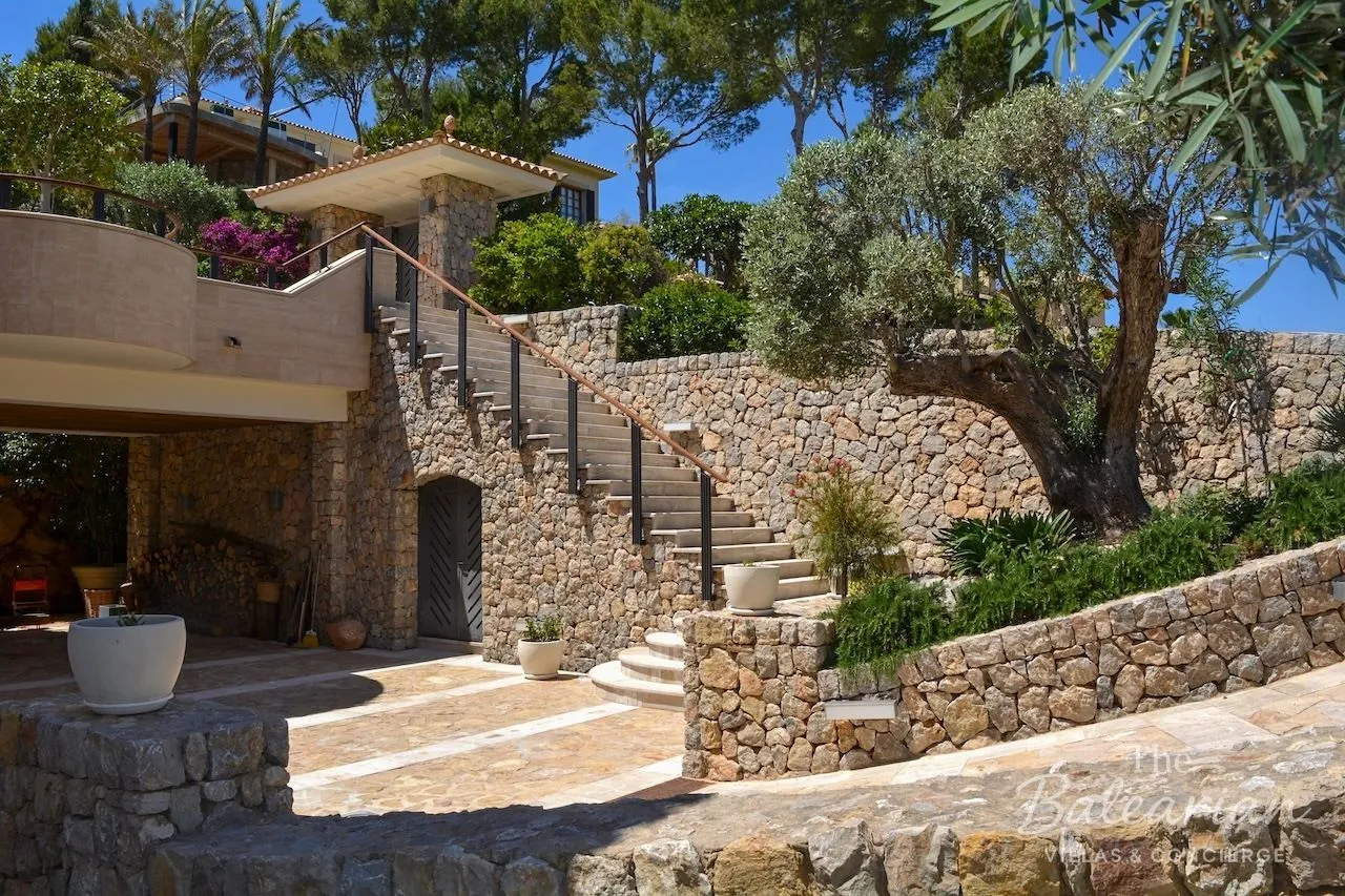 The south‑facing plot of approximately 1,800 m² enjoys unobstructed views of the open sea and creates a wonderfully relaxed holiday ambiance. Shaded areas in the garden and on the terraces invite you to fully unwind and leave everyday life behind. Access via a guarded community ensures maximum privacy. The renowned Gran Folies Beach Club is just a few minutes away, as is the elegant harbor of Port d’Andratx. The golf course and sandy beach of Camp de Mar can be reached within a short drive, while Palma with its historic old town and cathedral is approximately 25 minutes away.